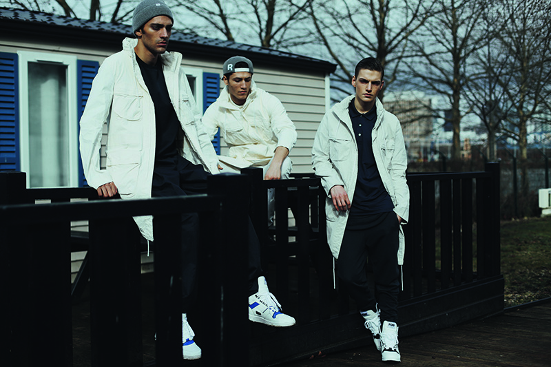Urban Youth–WAD magazine latest issue features a fashion story lensed by Fanny Latour-Lambert, featuring models Wael Sersoub, Brett and Maxime. Styled by Jean-Paul Paula in a young and urban wardrobe, that mixes sportswear with casual numbers, the boys pose for outdoor images, wearing Lacoste’s signature polo shirts, camouflage prints, crisp cotton shirts, hoodies and baseball caps. / Photography assistance by Alexis Pinzon. Styling assistance by Marine Becker and Margaux Dupont. Makeup by Yann Boussand Larcher.