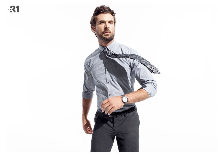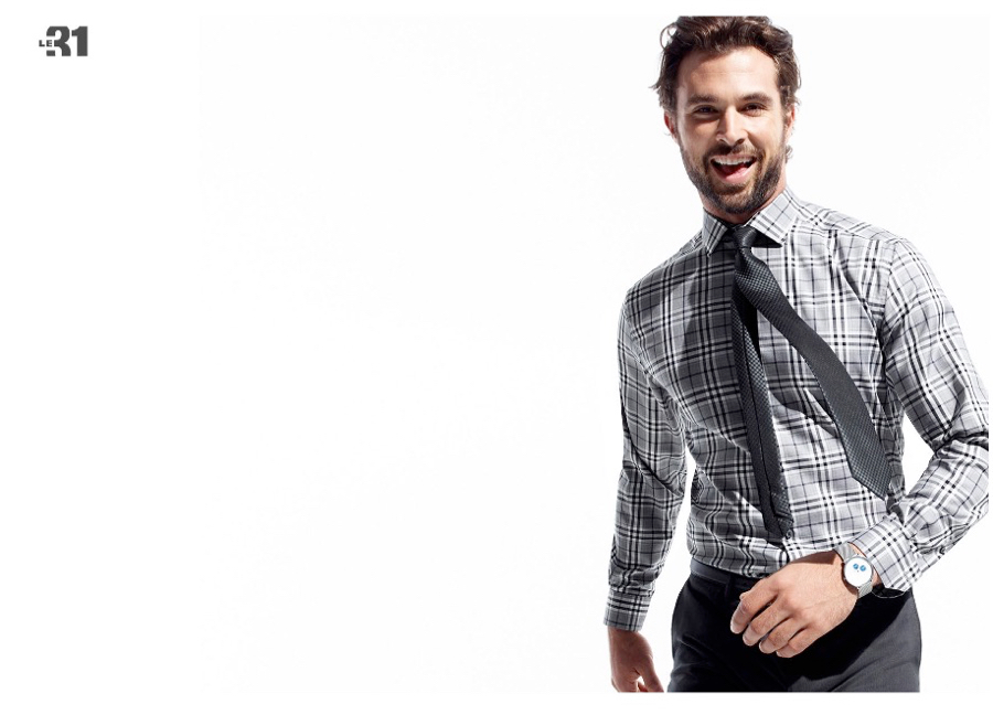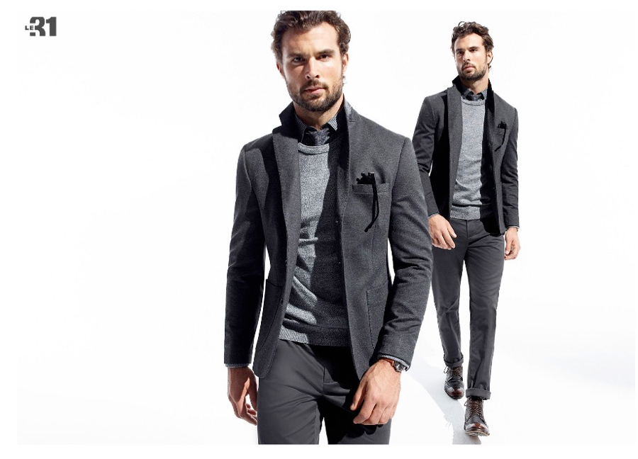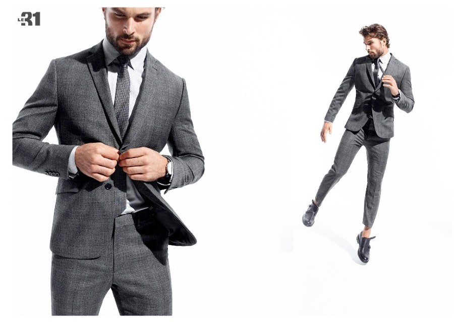 One of Simons’ go-to models for the season, Walter Savage reunites with the retailer following a casual style guide. This time around, Walter cleans up in sharp suiting and smart separates for an impressive sartorial outing. Charcoal is the key color as Walter shows us choice, trim suits and great pieces such as a light gray cardigan sweater.
