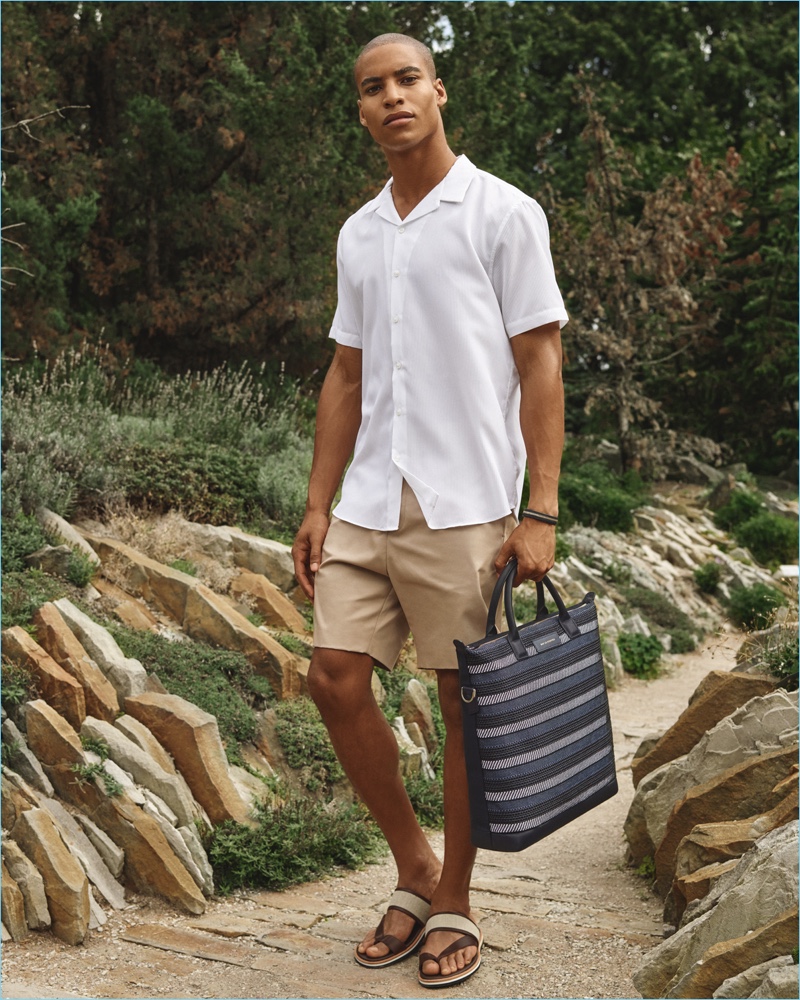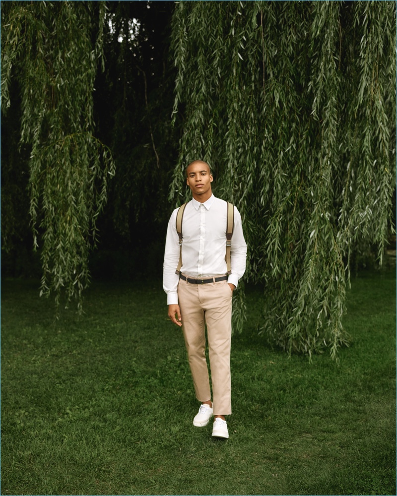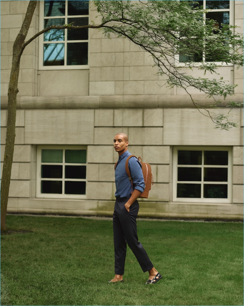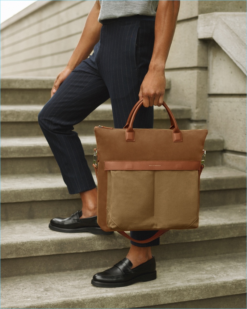 WANT Les Essentiels takes to the Canadian Center for Architecture and Montreal Botanic Gardens for its spring-summer 2017 campaign. Model Malik Lindo fronts the outing, linking up with photographer, Mathieu Fortin. Stylist Marianne Dubreuil outfits the Elite Toronto model in a sleek wardrobe that accents WANT Les Essentiels’ latest accessories and footwear.