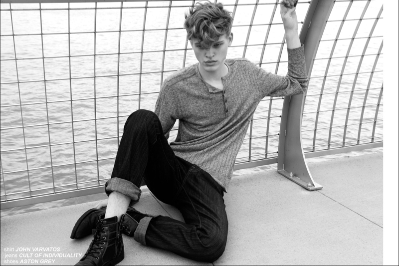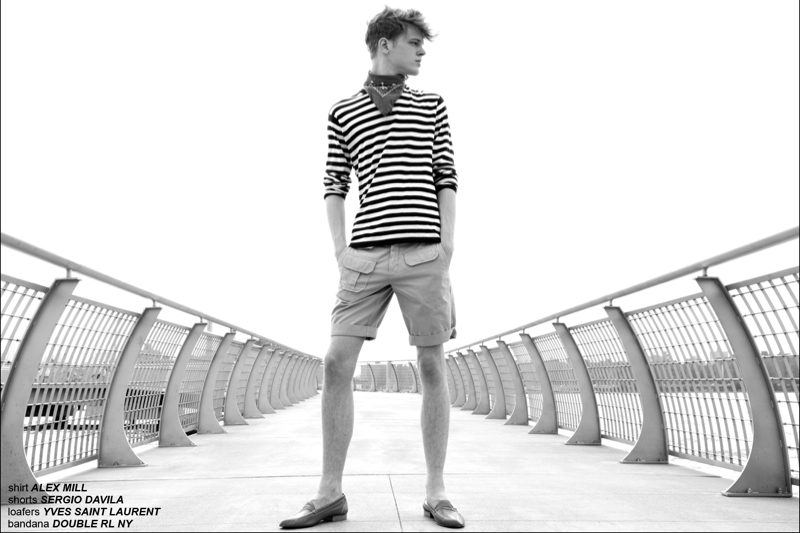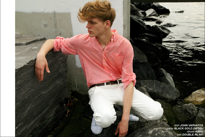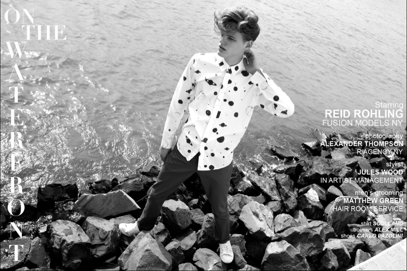 On the Waterfront-Fusion model up and comer Reid Rohling lends a boyish quality to a new story from Ponyboy. Connecting with photographer Alexander Thompson, Reid is captured in summer fashions that take on a certain ease. Combined with a colorful nature and playful prints, Reid’s wardrobe is a smart display as styled by Jules Wood. / Grooming by Matthew Green.