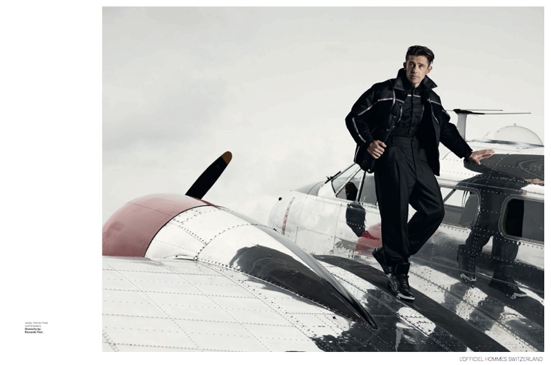 Werner-Schreyer-LOfficiel-Hommes-Switzerland-CoverPinThe Aviator-After gracing the cover of L’Officiel Hommes Italia, top model Werner Schreyer adds another edition to his portfolio, appearing on the cover of L’Officiel Hommes Switzerland’s September 2014 issue. Photographed by Sandro Baebler, the Sight Management model appears in a sharp fall fashion editorial that takes him to a plane hangar. Exuding a masculine charm, Werner is a refined vision. Tackling an aviation theme, Brigitte Margareta Wilhelm styles Werner in leather jackets, relaxed trousers and an oversized coat with fur trim. Featuring garments from Dior Homme, Belstaff and other labels, the wardrobe captures a classic angle to the fall 2014 collections.