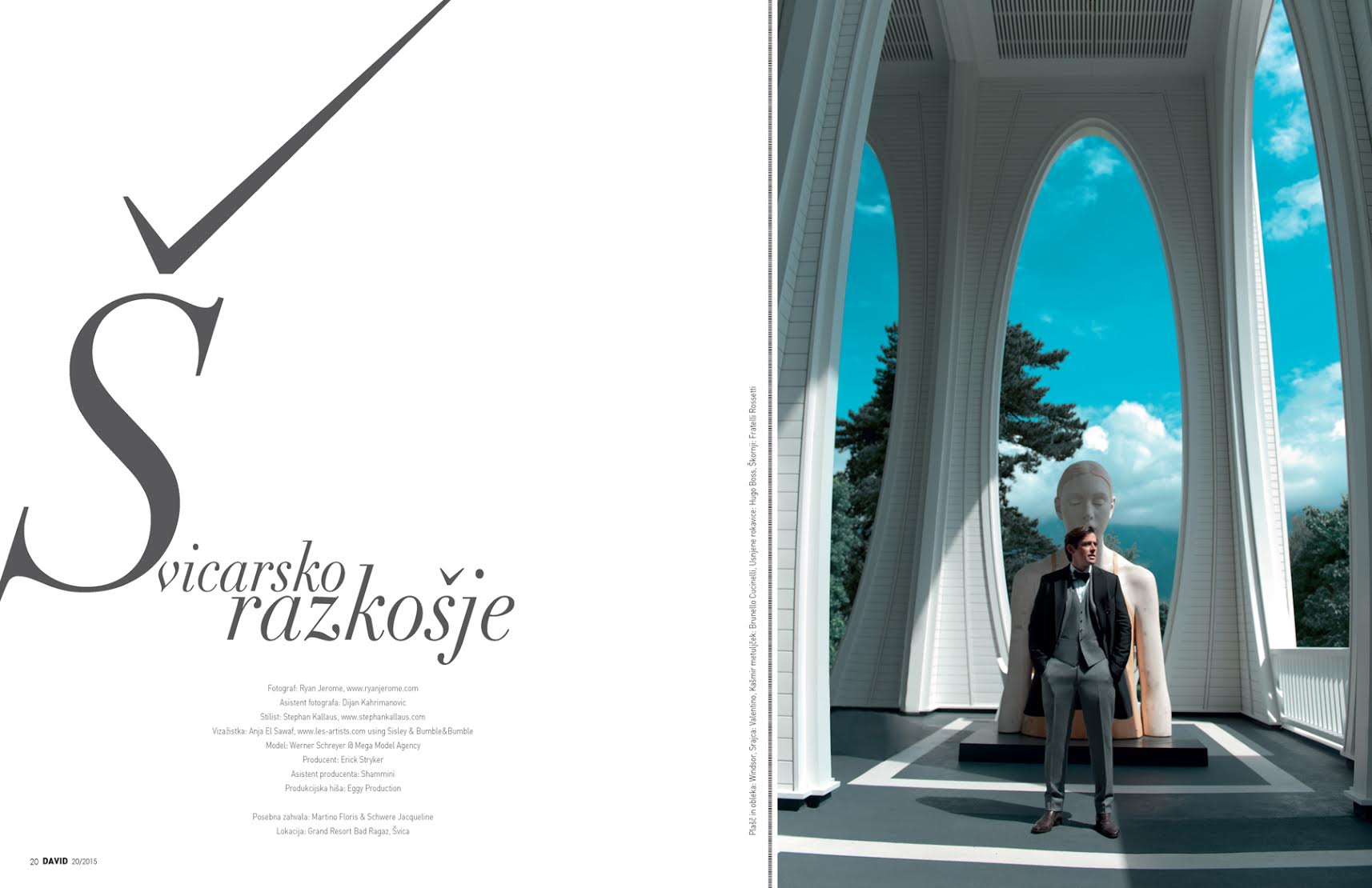 Ryan Jerome photographs Werner Schreyer for the the latest cover story of David magazine. The top model charms in a fall wardrobe of impressive suiting. Styled by Stephen Kallaus, Werner models sharp looks from brands such as Louis Vuitton and Tommy Hilfiger. / Grooming by Anja El Sawaf (Les Artists) using Sisley and Bumble & Bumble. Production by Erick Stryker and Eggy Production.