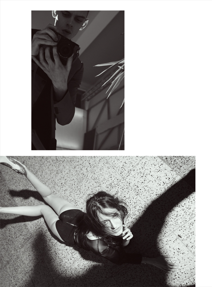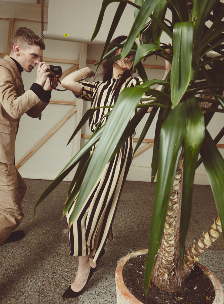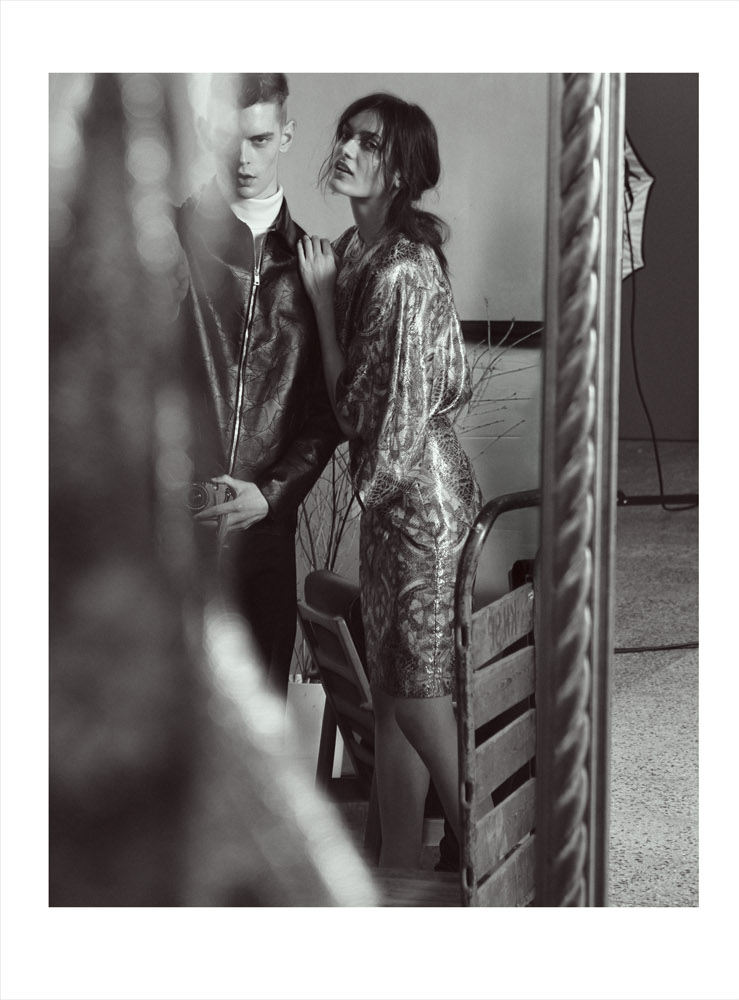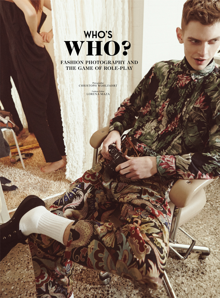 Who’s Who? Posing as a photographer, model Dan Kling appears before the lens of Christoph Wohlfahrt for a story in Sleek magazine. Styled by Lorena Maza, Dan joins Erjona Ala. Wearing fun youthful styles, Dan’s wardrobe consists of upbeat prints, various silhouettes and luxe fabrications such as leather. / Grooming by Anna Neugebauer (Bigoudi). Concept by Finja Rosenbaum. Photo assistance by Toni Jahn. Stylist assistance by Nauva Nauva.