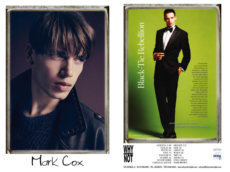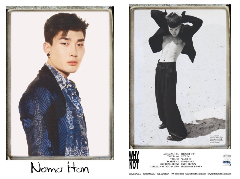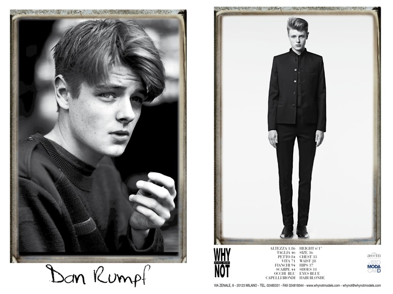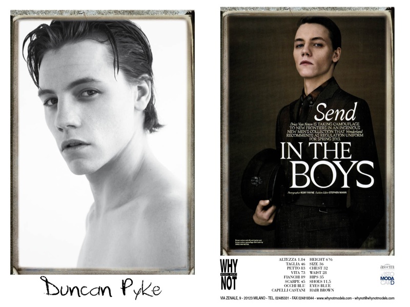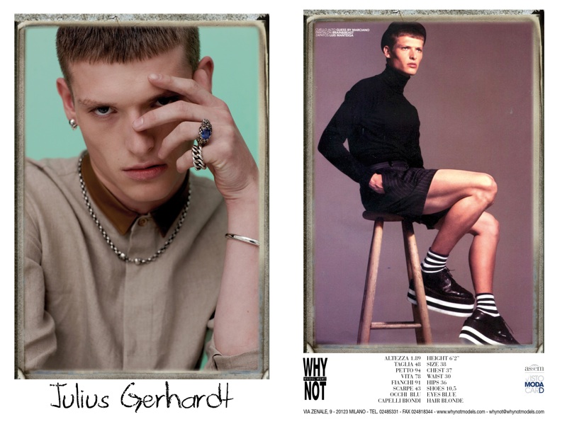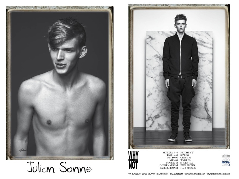 WhyNot–Coming in at nearly two hundred models strong, Milano agency WhyNot is ready for Milan Fashion Week for the spring/summer 2014 season. This season, WhyNot’s roster includes seasoned veterans Arthur Kulkov, Adam Senn, runway regulars Aiden Andrews, Bastian Thiery, Jacob Coupe, breakout stars Jarrod Scott, Duncan Pyke and countless others.