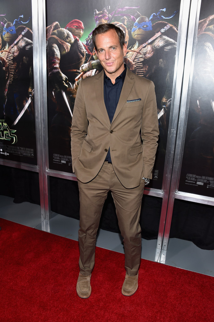 Ferragamo Encore-Following the Los Angeles premiere of ‘Teenage Mutant Ninja Turtles’, where he wore a stunning white linen Salvatore Ferragamo suit, actor Will Arnett wore another look from the Italian label for the movie’s New York premiere. Wearing a Salvatore Ferragamo musk green notch collar suit, Arnett finished the fall ready look with a navy shirt.