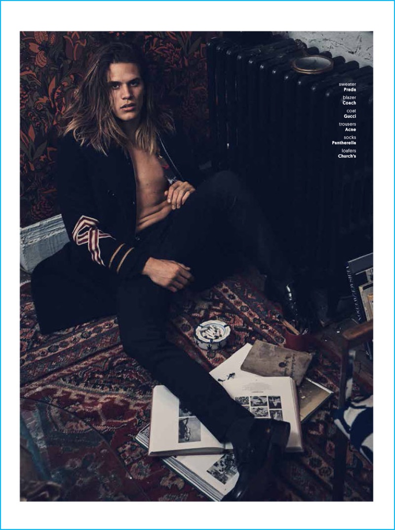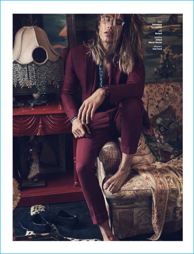 William Hawkins brings a free spirit to autumn’s latest fashions as he graces the pages of FourTwoNine. Donning an eclectic wardrobe, William is styled by Taylor Brechtel. Photographed by Dean Isidro (Atelier Management), William wears standouts such as a burgundy Berluti suit, graphic Louis Vuitton shirt, and tropical print Gucci coat. / Grooming by Riad Azar (Atelier Management).