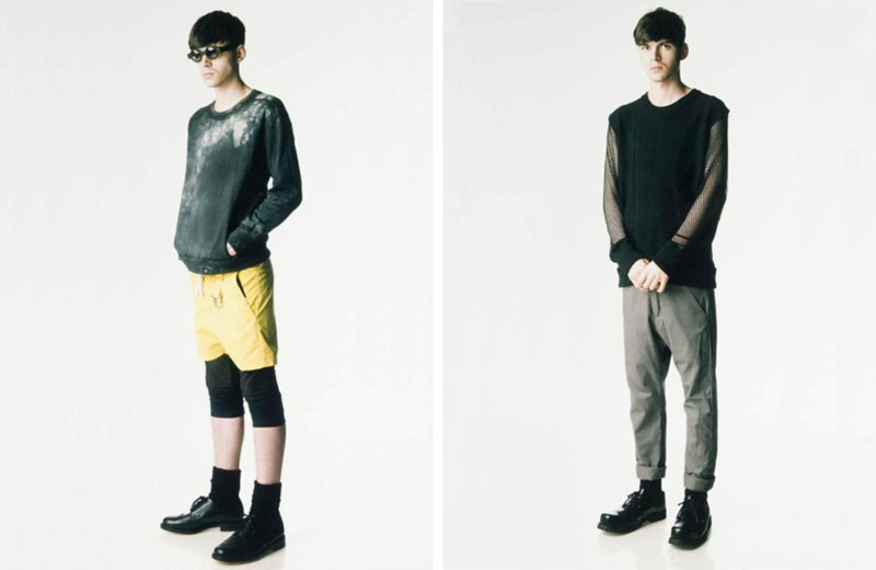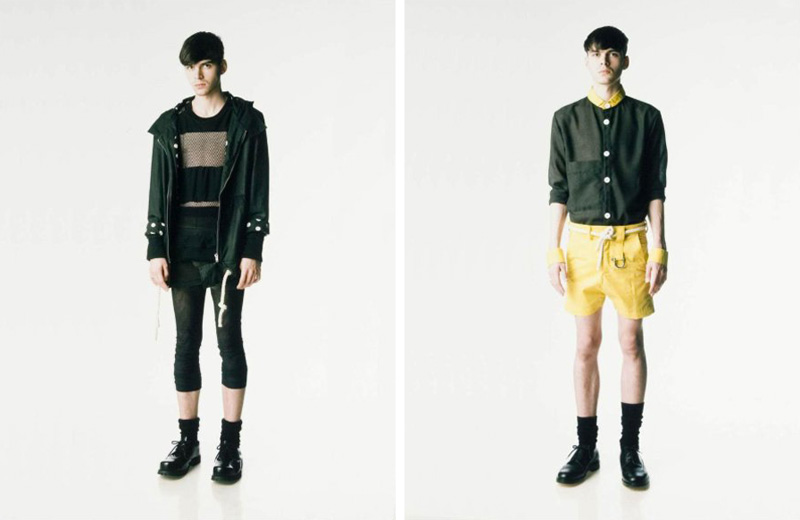 William Richard Green disrupts the expected to present a new spin on the nautical motif. Looking beyond the surface for inspiration, a peppy yellow gives way to a dark collection that relishes in the less than attractive elements of the ocean with scales and a mix of proportions providing the canvas for a meeting of aesthetics. Whereas boy-cut shorts offer an endearing quality, mesh inserts and textured leggings lend Green’s latest outing a surprising edge.