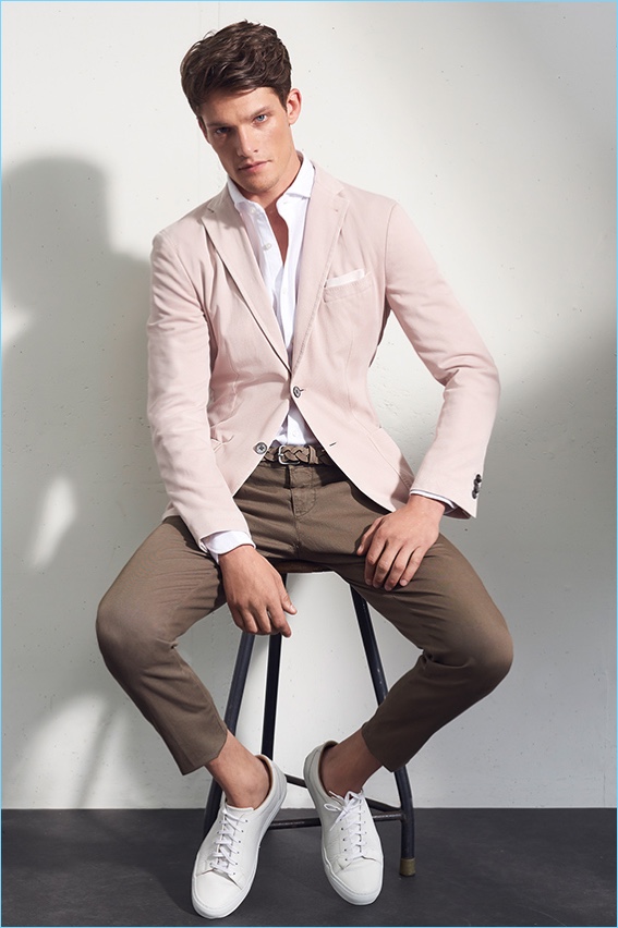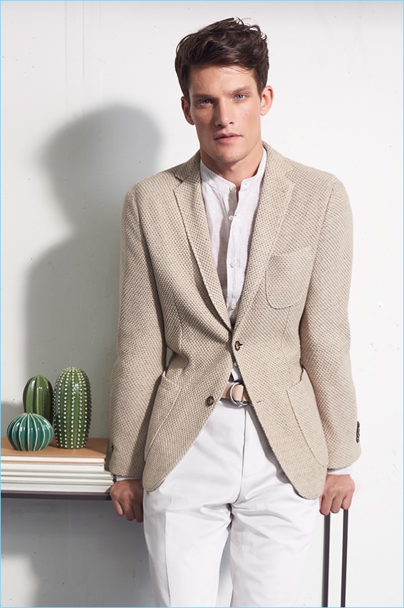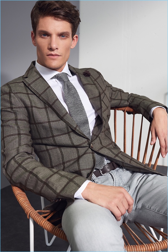 British model Danny Beauchamp dons smart tailoring for Windsor's spring-summer 2018 campaign.Pin