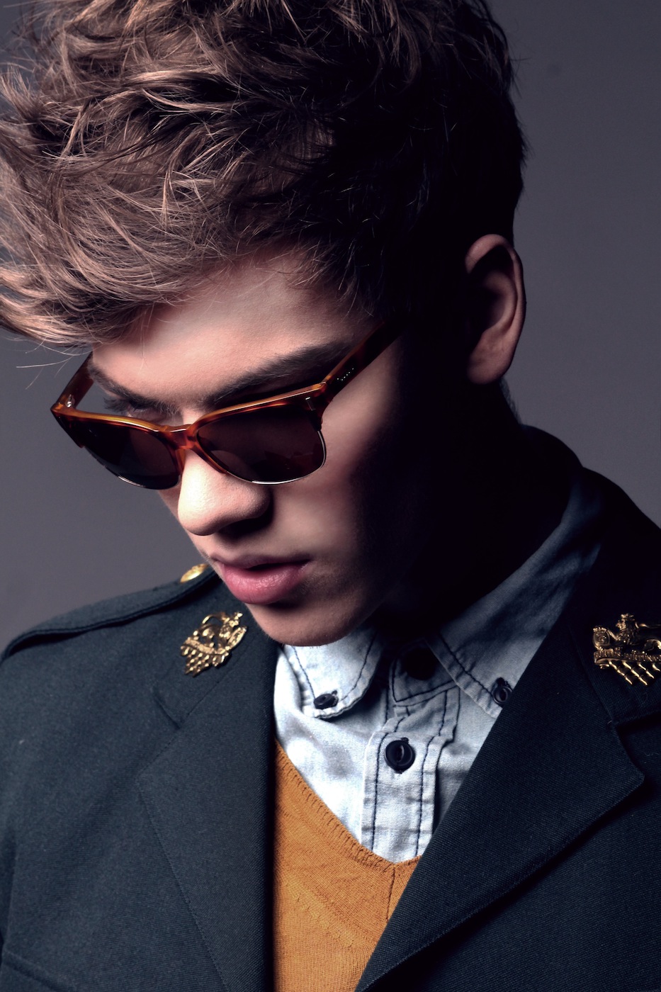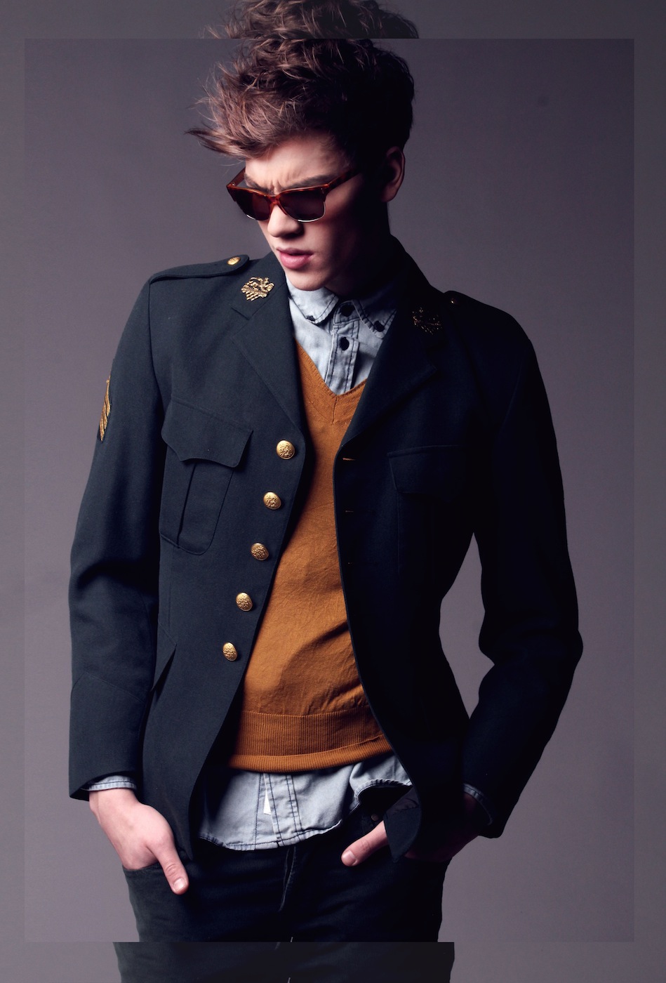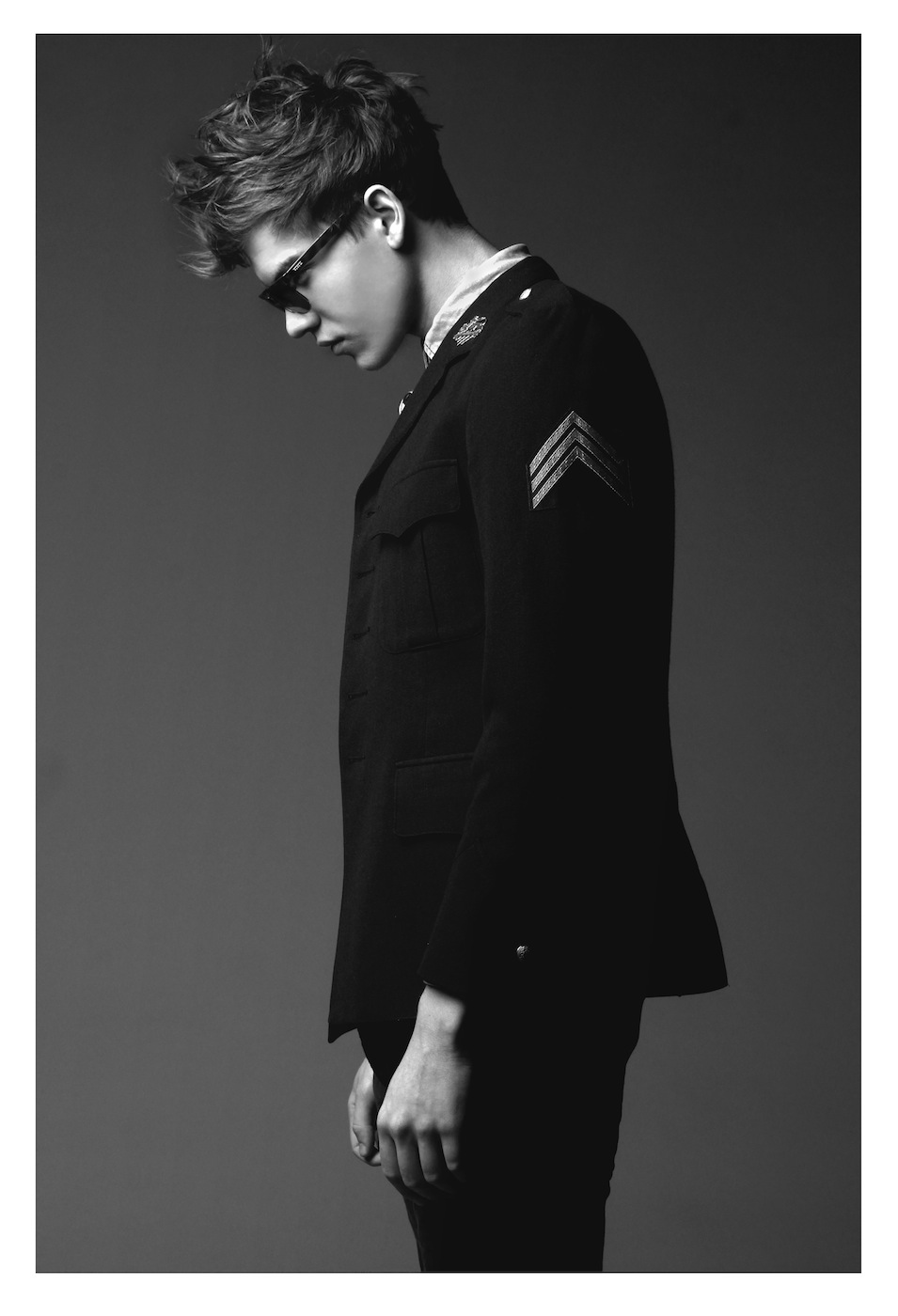 Shooting With Matthias–Wojciech Zarychta focuses the attention on Matthias Świdnicki, portraying the Panda model with a stylish attitude. Captured in striking studio images, Matthias easily brings to life to an appealing character, styled by Konrad Kaniecki (Ko.Ka.Moda) in military-inspired jackets, studded shirts and striped tees, matched with timeless acetate sunglasses. / Makeup by Laura Karaś.