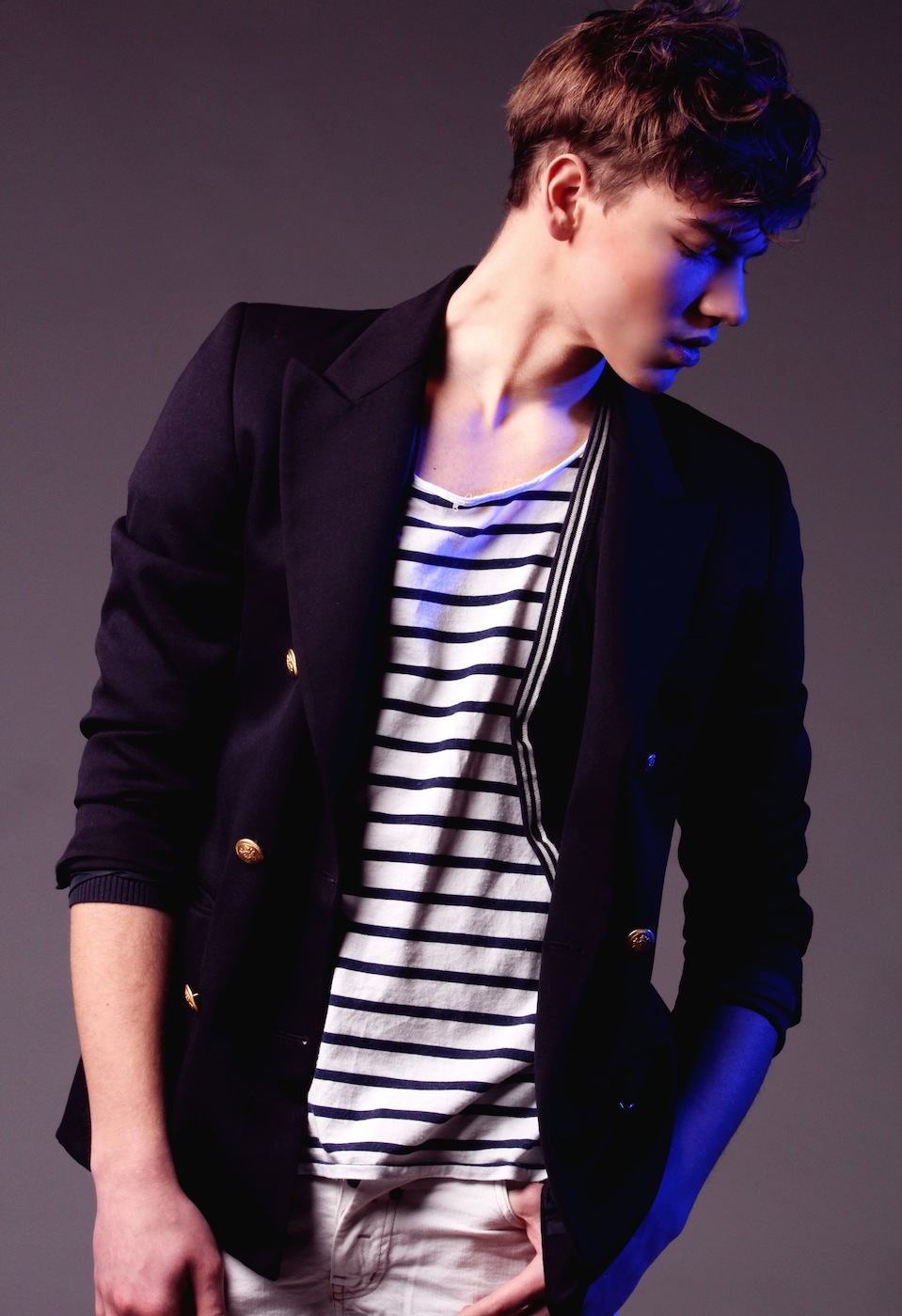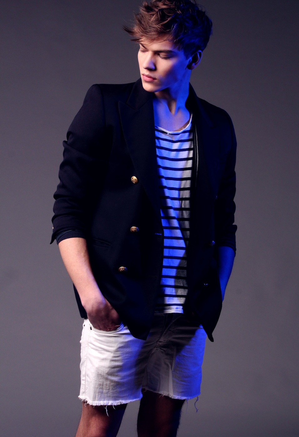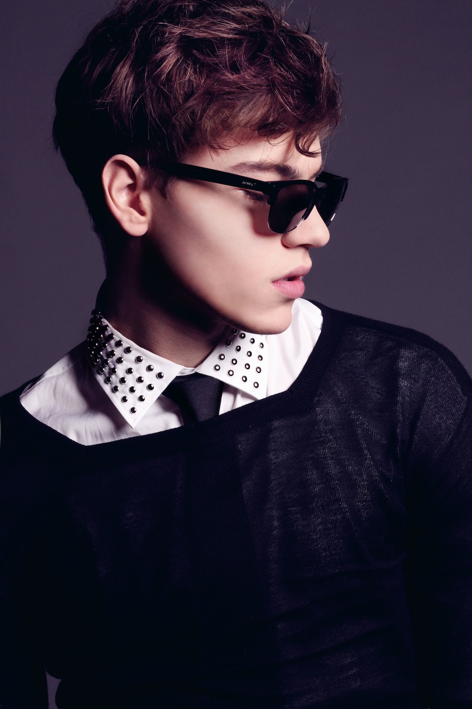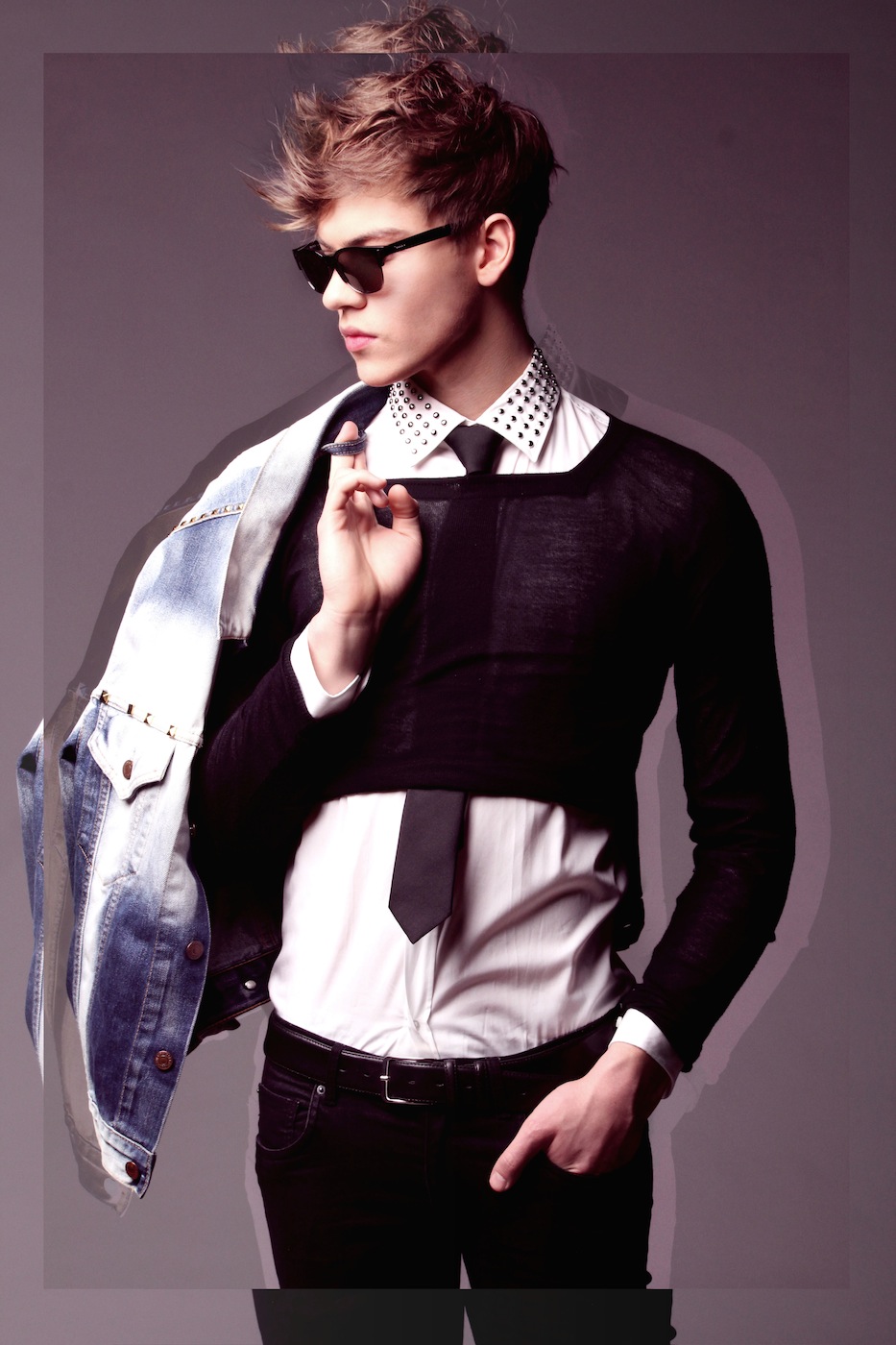 Shooting With Matthias–Wojciech Zarychta focuses the attention on Matthias Świdnicki, portraying the Panda model with a stylish attitude. Captured in striking studio images, Matthias easily brings to life to an appealing character, styled by Konrad Kaniecki (Ko.Ka.Moda) in military-inspired jackets, studded shirts and striped tees, matched with timeless acetate sunglasses. / Makeup by Laura Karaś.