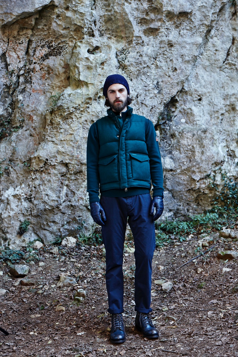Woolrich John Rich & Bros. Fall/Winter 2014–Boasting parkas and quilted outerwear, Woolrich John Rich & Bros’ fall/winter 2014 collection provides a stylish take on utilitarian pieces, ideal for the great outdoors. Offering an optimal color palette for fall and winter, inspiration for the range is taken from wood and wool, resulting in camouflage prints, earthy hues and shades of blue. Alongside numerous vests and sweaters are anoraks, water-repellent nylon blazers and lightweight down. Rounding out a collection that includes their iconic Arctic parka, Woolrich John Rich & Bros. collaborates with Tuscan shoemaker Buttero for Italian-made sneakers featuring Woolrich fabric and a Teflon treatment.