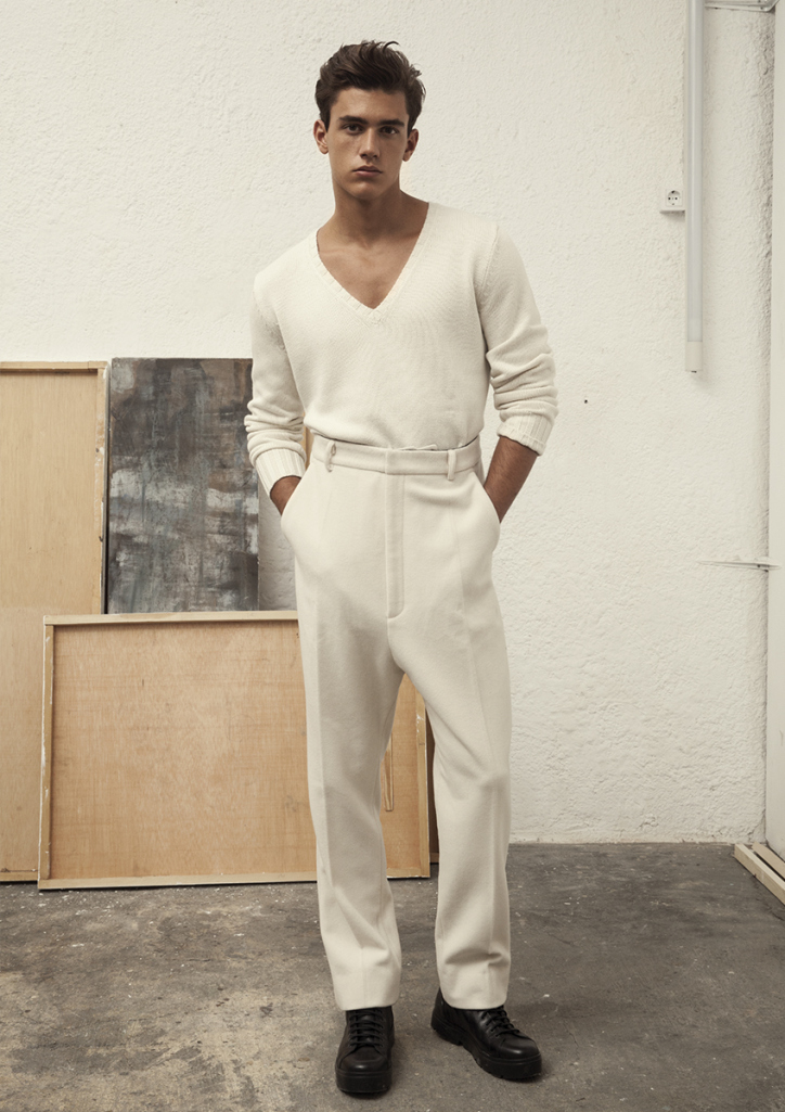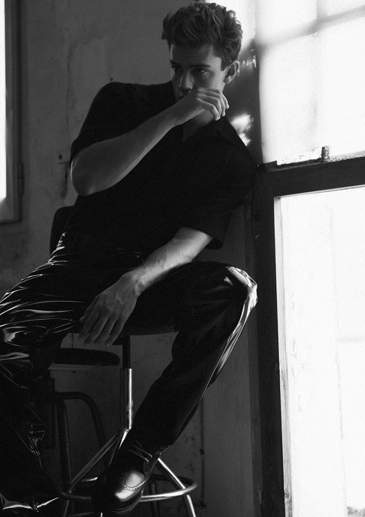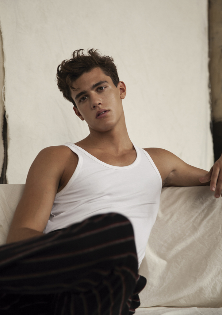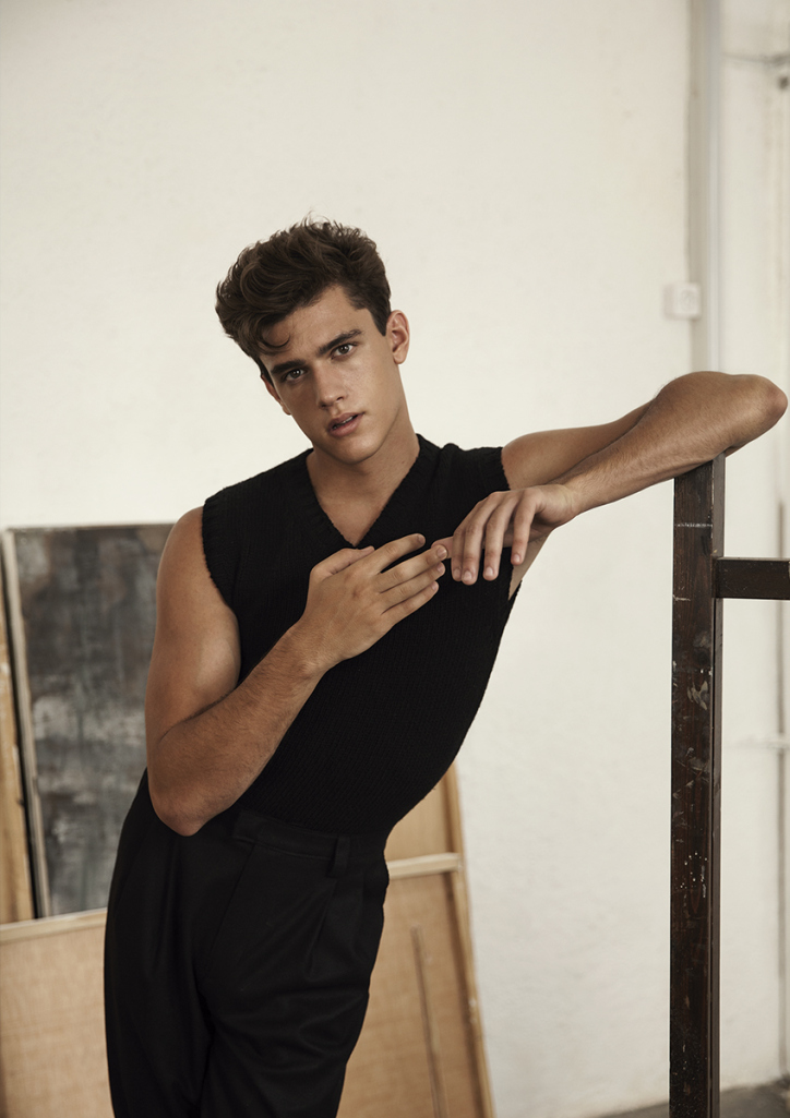 Wearing a laid-back mix of ensembles that still maintain a chic attitude, Xavier is photographed by Pablo Sáez. Donning warm hues as well as stark black, Xavier is captured in denim jeans, basic t-shirts and other staples.