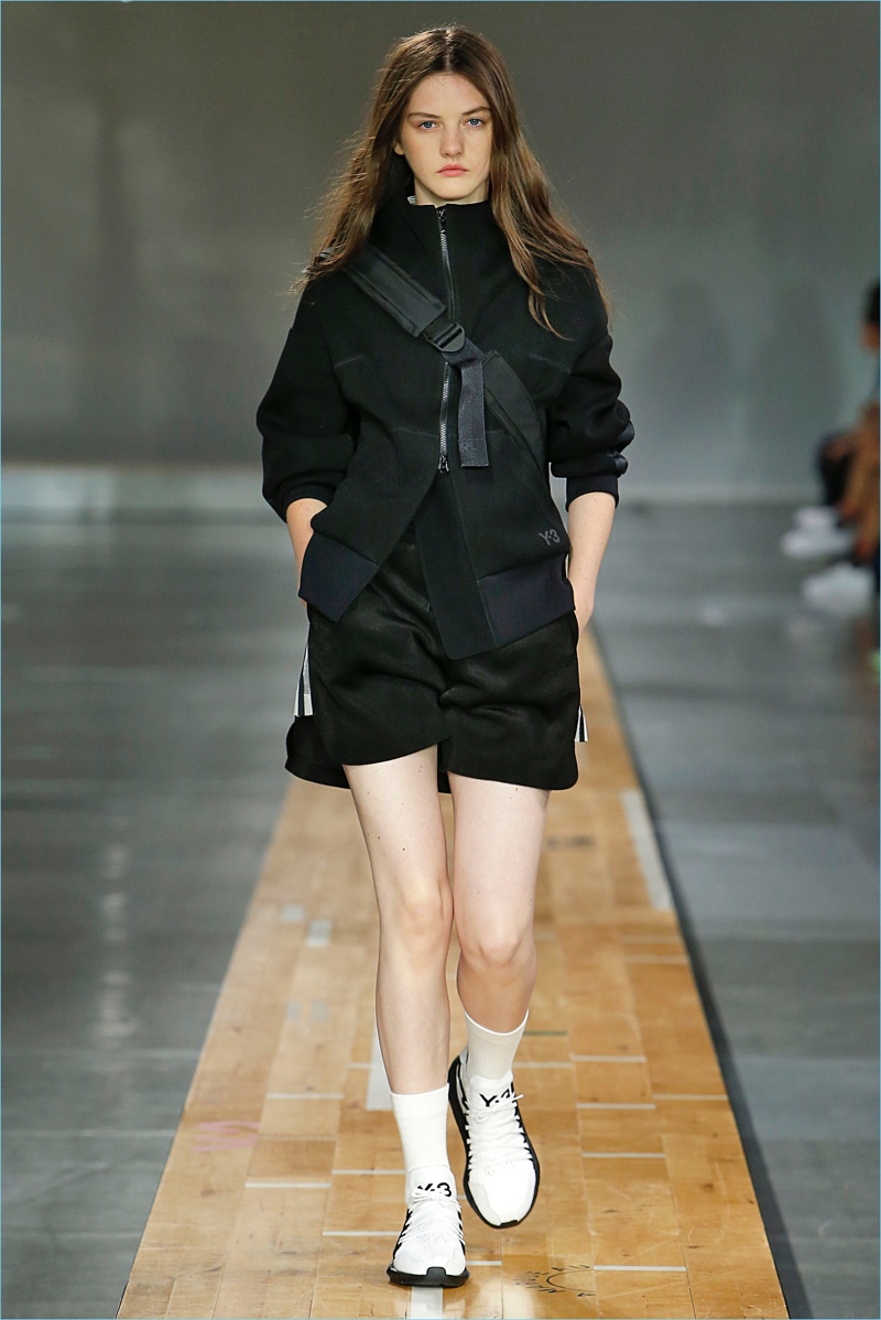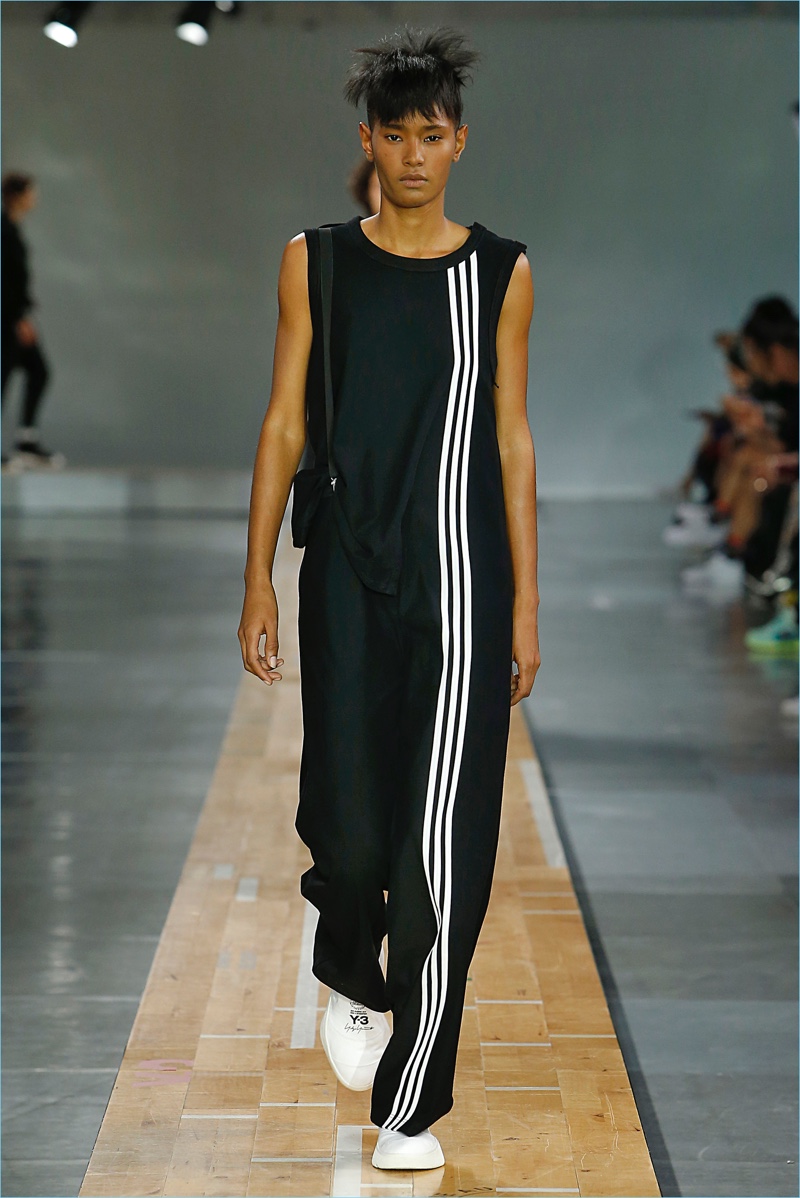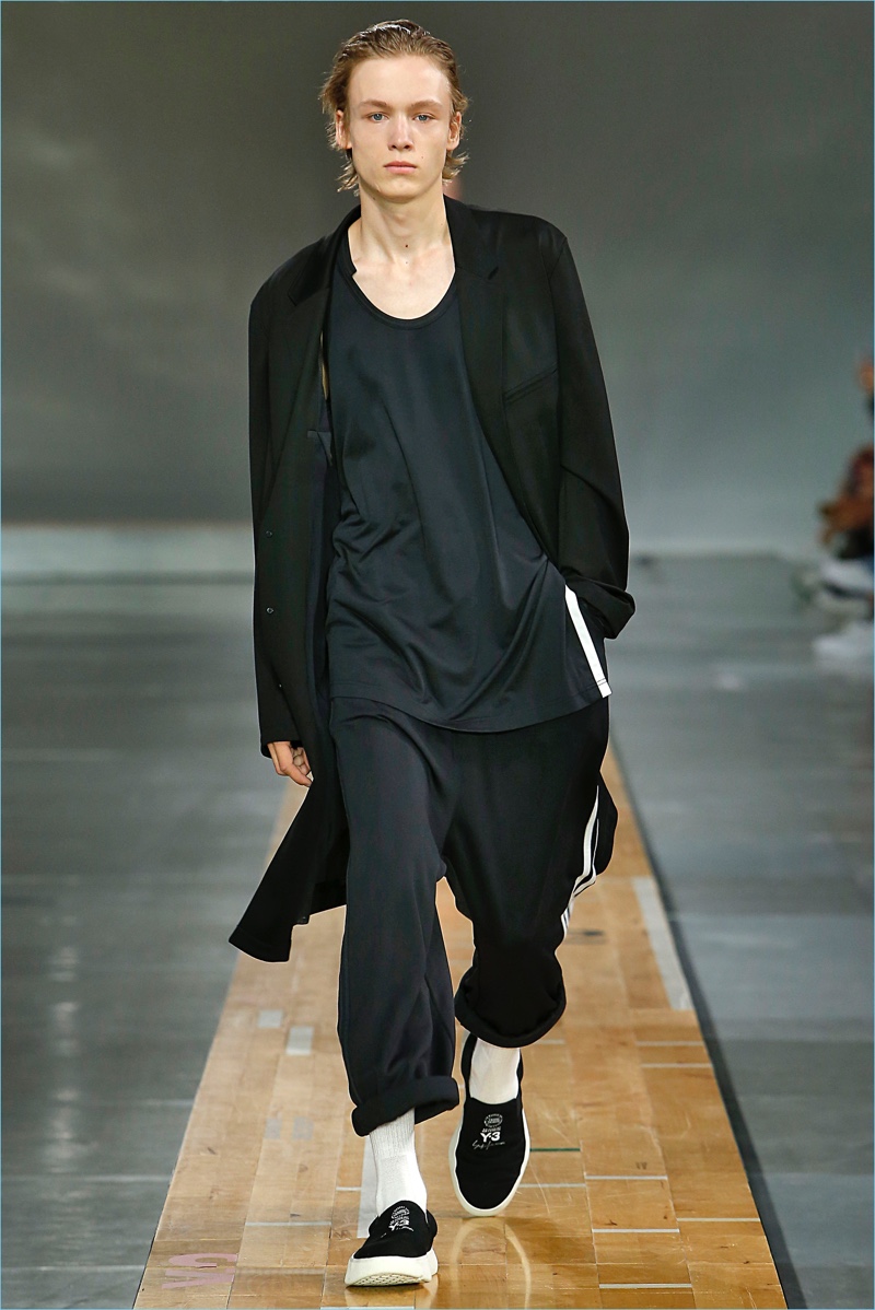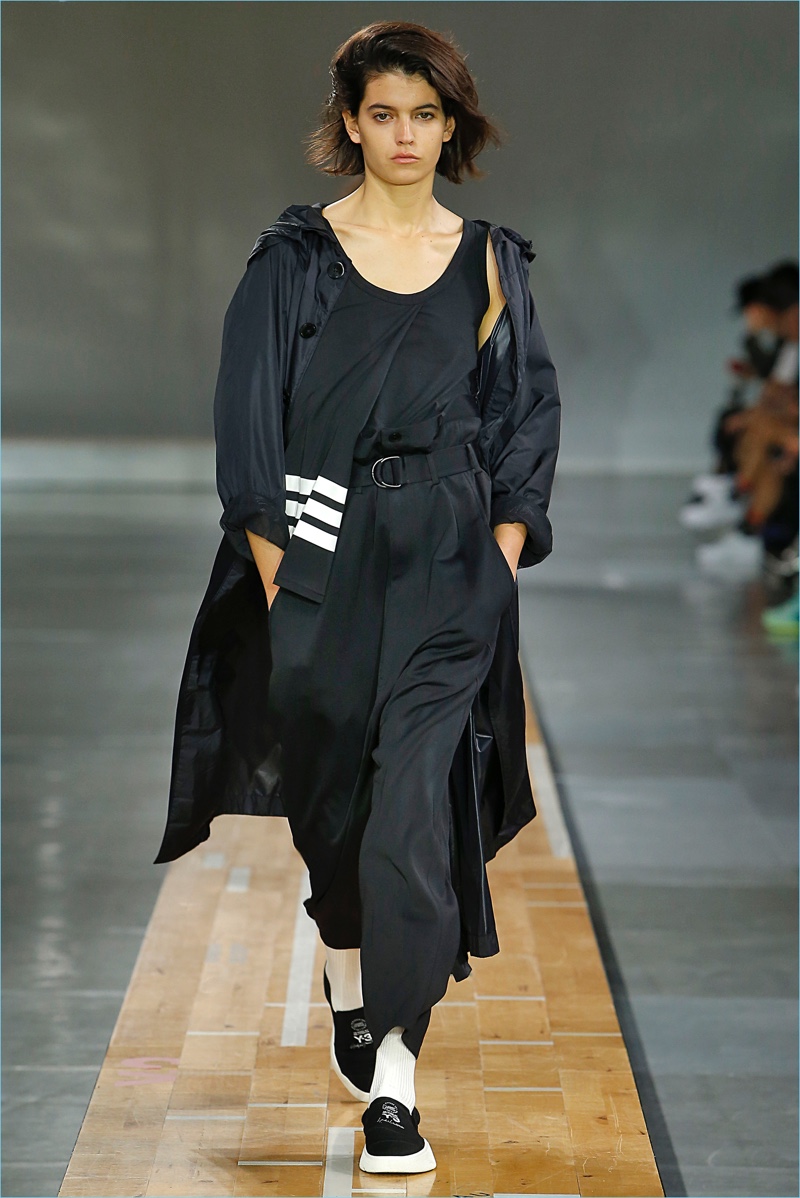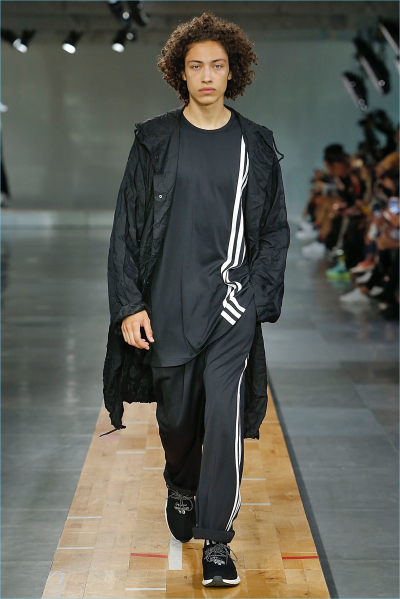 Y-3 returns to its roots for spring-summer 2018. Designer Yohji Yamamoto presents a clean straight-forward approach to sporty attire. Simple lines come together with a black and white color palette for an easily accessible season. The co-ed fashions work hand-in-hand with an emphasis on casual everyday style. Designing in modern terms, Yamamoto’s lineup includes elongated shirts, joggers, and oversize coats. Highlights of the collection put the focus on footwear with Y-3’s Suberou, Bashyo, Kusaris, and Saikou styles.