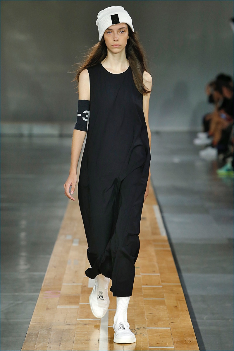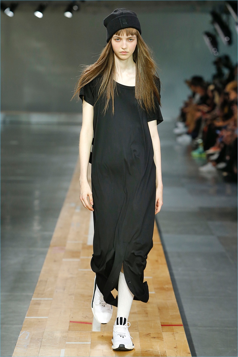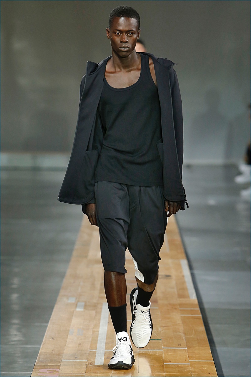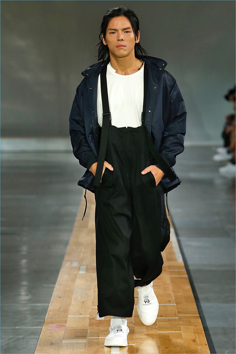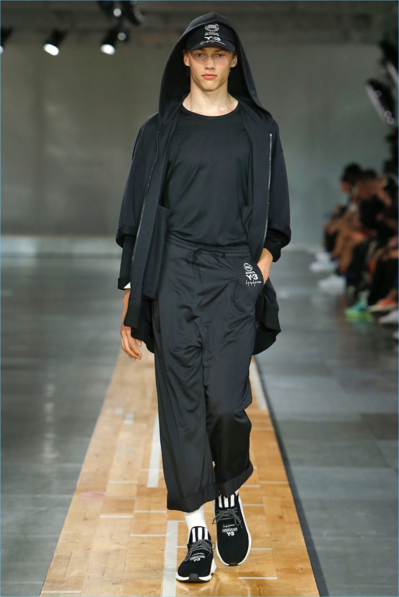 Y-3 returns to its roots for spring-summer 2018. Designer Yohji Yamamoto presents a clean straight-forward approach to sporty attire. Simple lines come together with a black and white color palette for an easily accessible season. The co-ed fashions work hand-in-hand with an emphasis on casual everyday style. Designing in modern terms, Yamamoto’s lineup includes elongated shirts, joggers, and oversize coats. Highlights of the collection put the focus on footwear with Y-3’s Suberou, Bashyo, Kusaris, and Saikou styles.