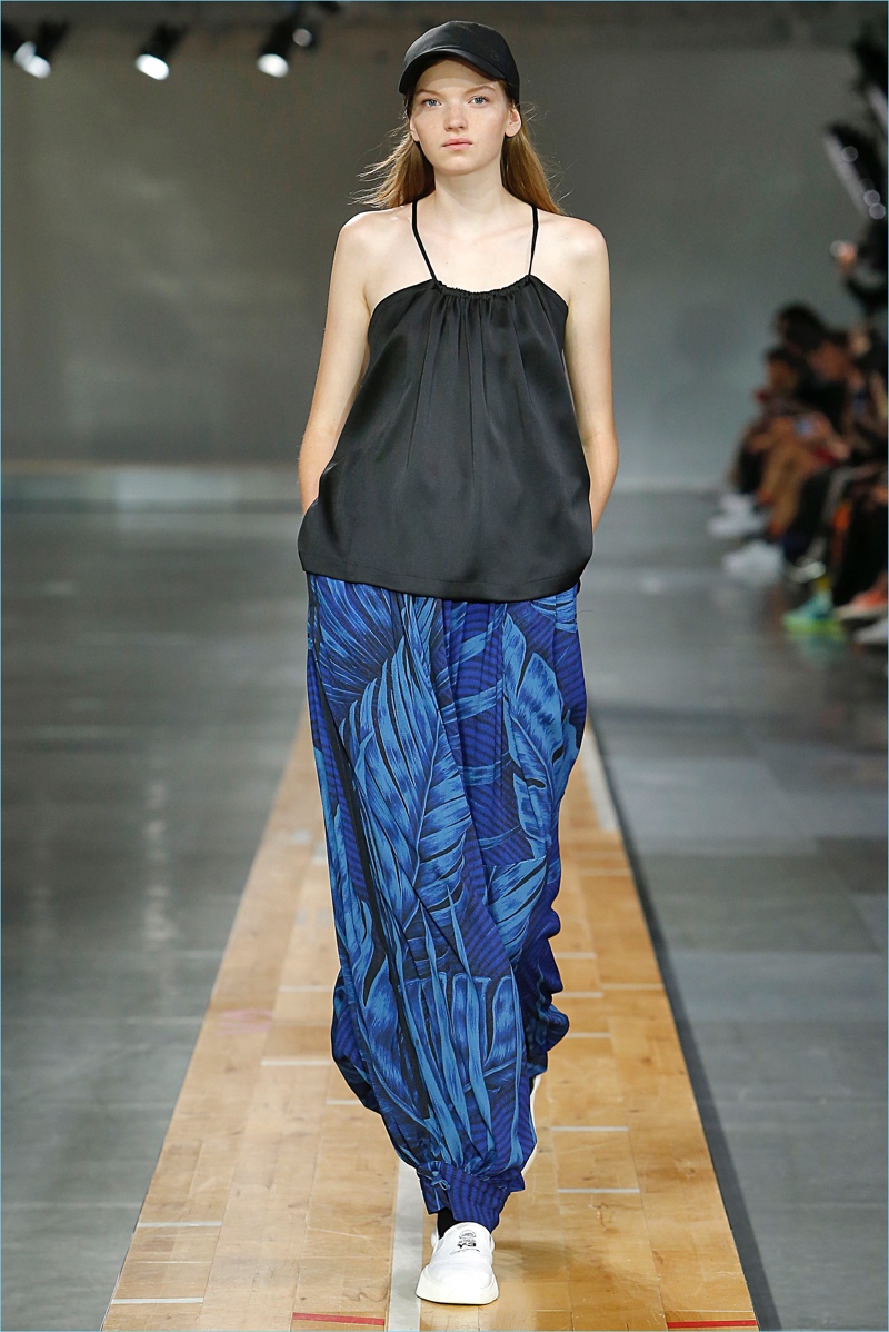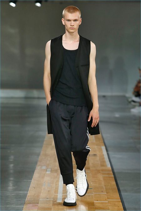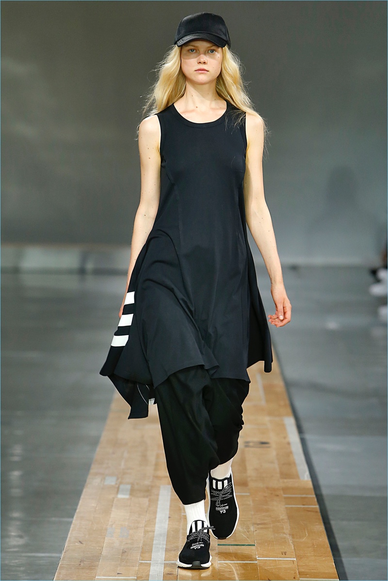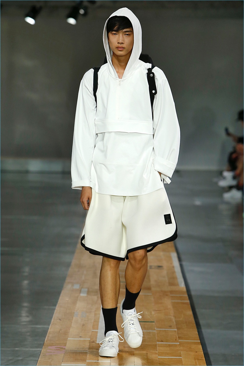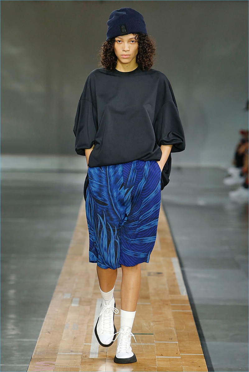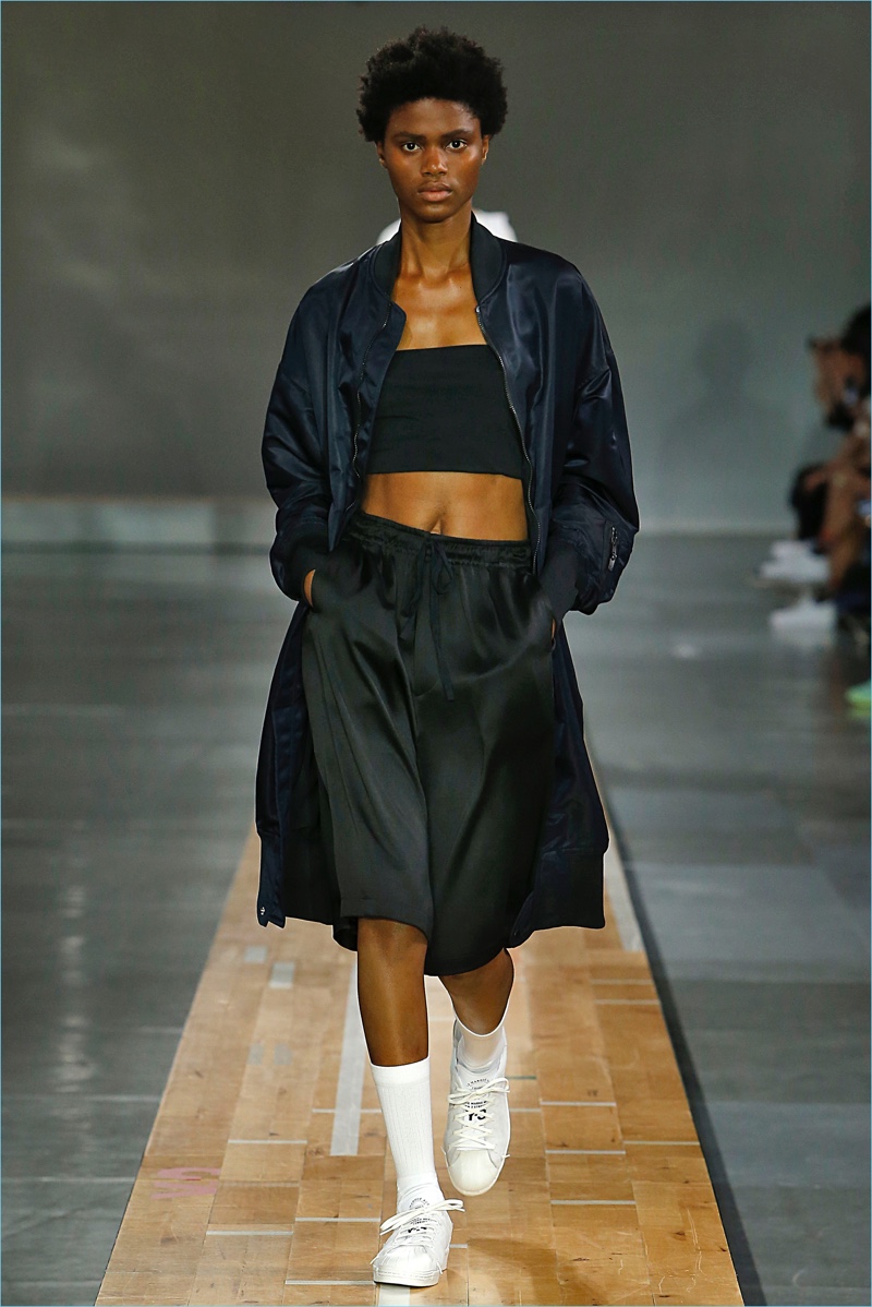 Y-3 returns to its roots for spring-summer 2018. Designer Yohji Yamamoto presents a clean straight-forward approach to sporty attire. Simple lines come together with a black and white color palette for an easily accessible season. The co-ed fashions work hand-in-hand with an emphasis on casual everyday style. Designing in modern terms, Yamamoto’s lineup includes elongated shirts, joggers, and oversize coats. Highlights of the collection put the focus on footwear with Y-3’s Suberou, Bashyo, Kusaris, and Saikou styles.