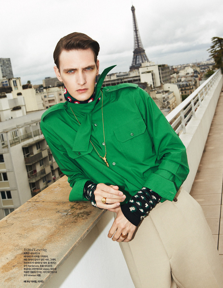 One Day in Paris–Captured in the city of Paris for the September issue of Harper’s Bazaar Man Korea, Success model Yannick Abrath gives us a preview of some of the standout looks included in the fall collections of luxury labels, such as Givenchy, Prada, Gucci and others. Captured by photographer Mark Pillai in a multifaceted wardrobe, which includes bold animalier prints, a luxurious rendition of the classic knitted sweater and updated visions on tailored silhouettes, Yannick easily alternates classic shades in menswear with more vibrant hues, unveiling next season’s eclectic approaching to dressing.