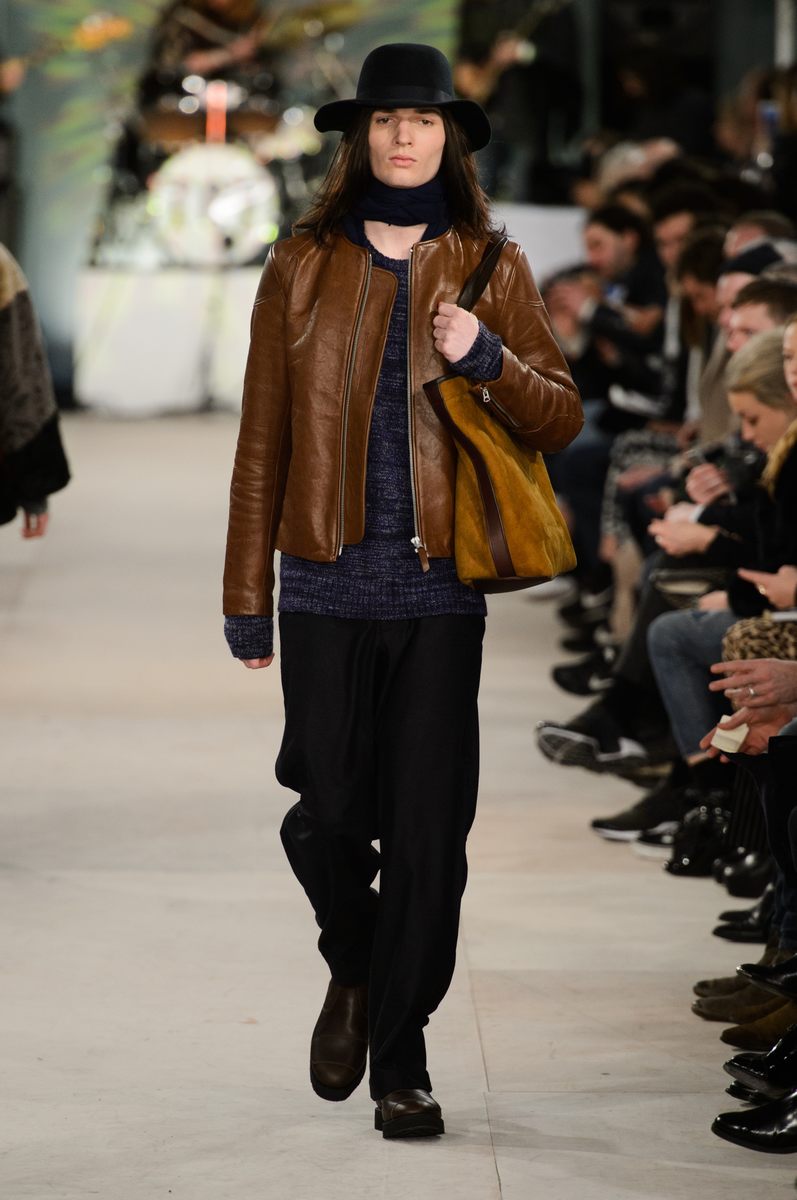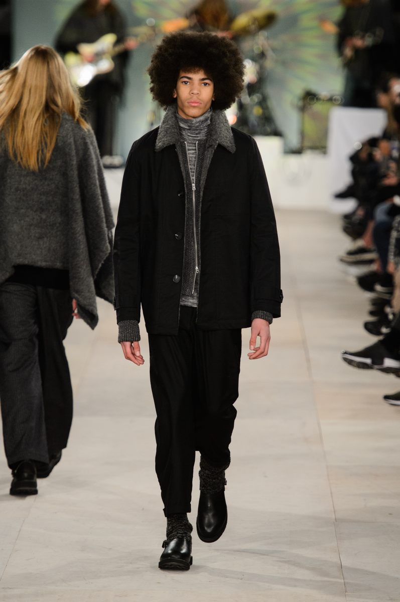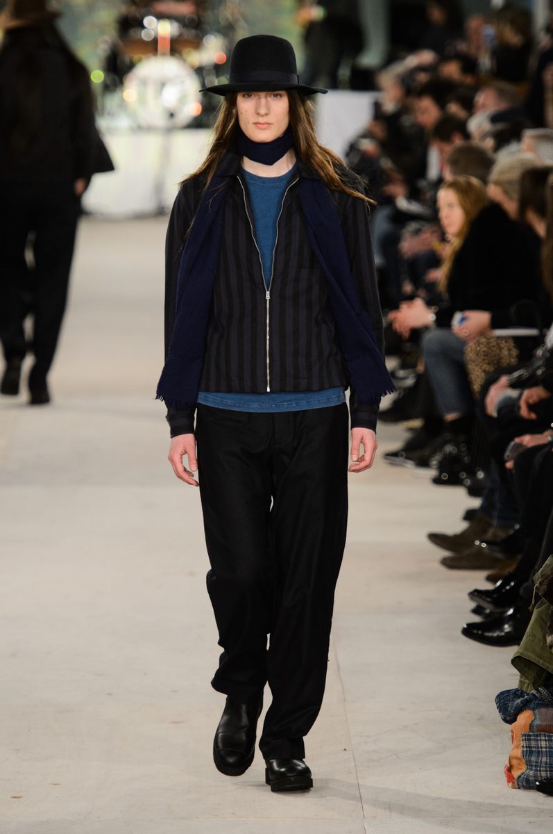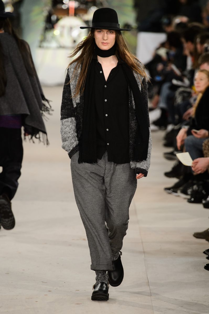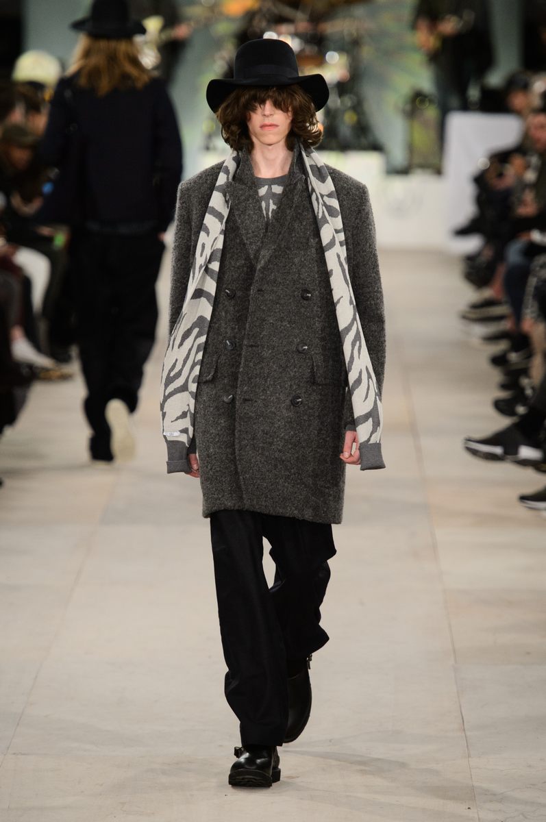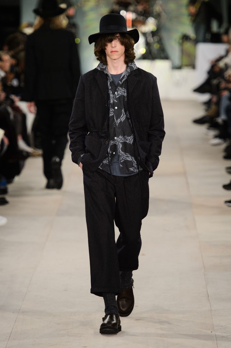 YMC went the way of the musician for its fall-winter 2016 men’s collection. Presented during London Collections: Men, the brand celebrated its 20 year anniversary with a stylish nod to 1960s British folk music with a bohemian flair. Dressed in dark hues, the range came with its fair share of ponchos, patched ripped jeans, leather jackets and knitwear featuring tonal prints. Embracing a slouchy silhouette, the man of YMC finished his artsy look with medium-length coats, light scarves, leather boots and wide-brimmed hats.