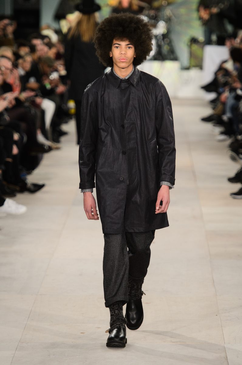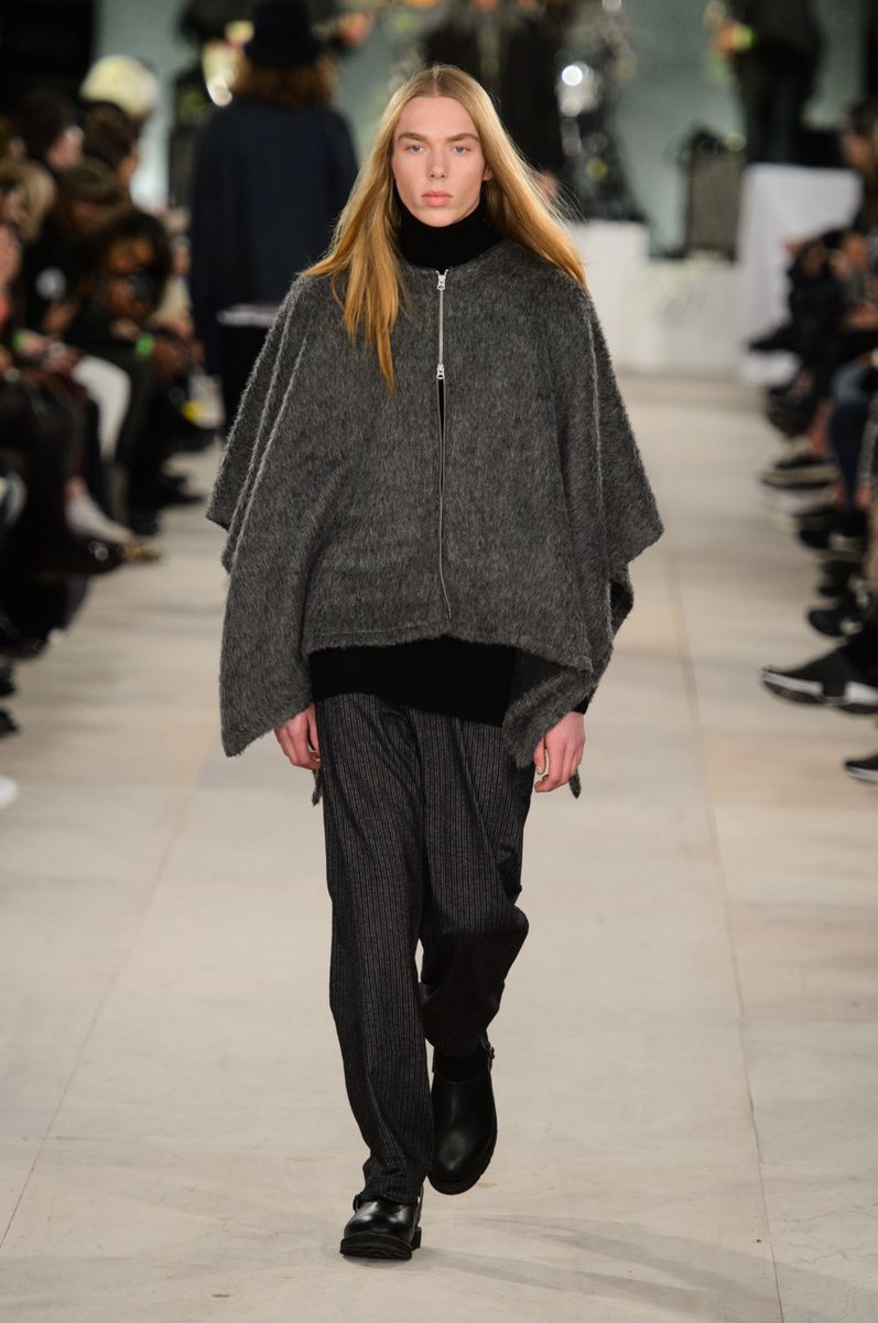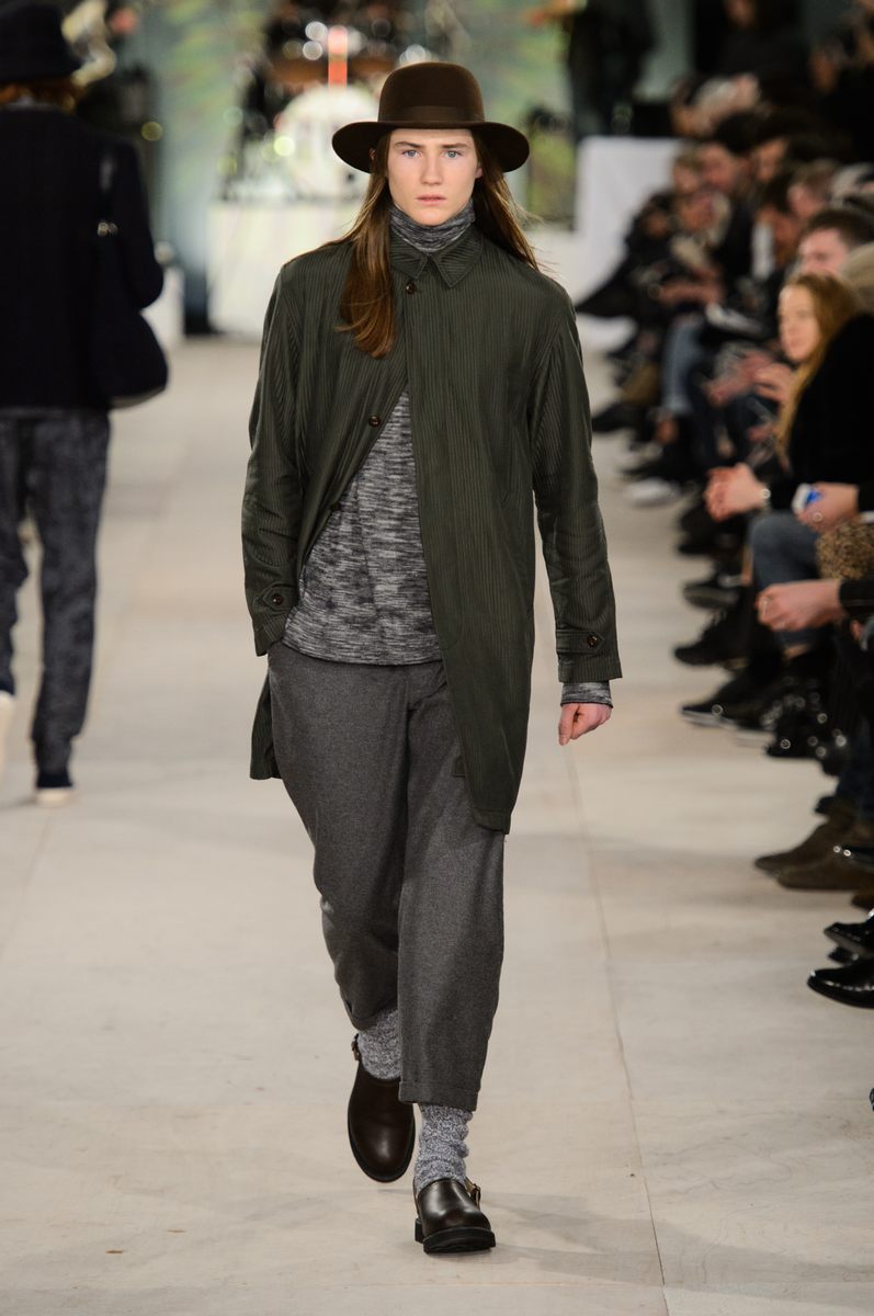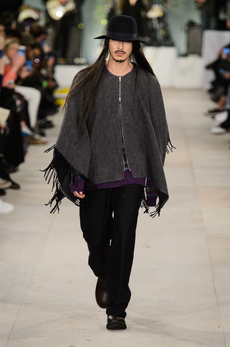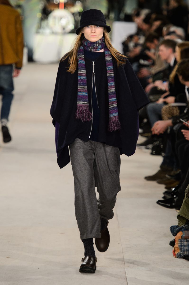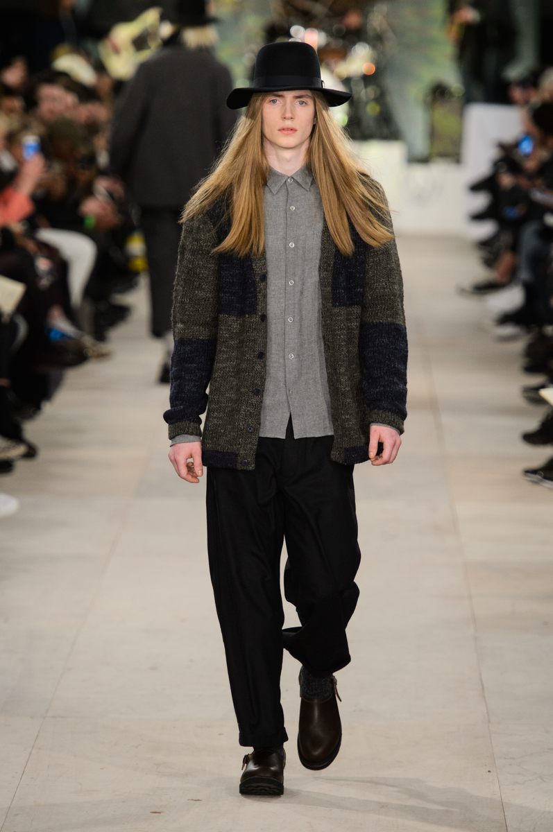 YMC went the way of the musician for its fall-winter 2016 men’s collection. Presented during London Collections: Men, the brand celebrated its 20 year anniversary with a stylish nod to 1960s British folk music with a bohemian flair. Dressed in dark hues, the range came with its fair share of ponchos, patched ripped jeans, leather jackets and knitwear featuring tonal prints. Embracing a slouchy silhouette, the man of YMC finished his artsy look with medium-length coats, light scarves, leather boots and wide-brimmed hats.