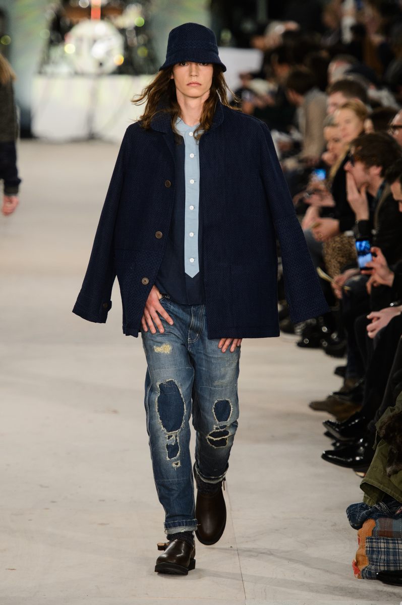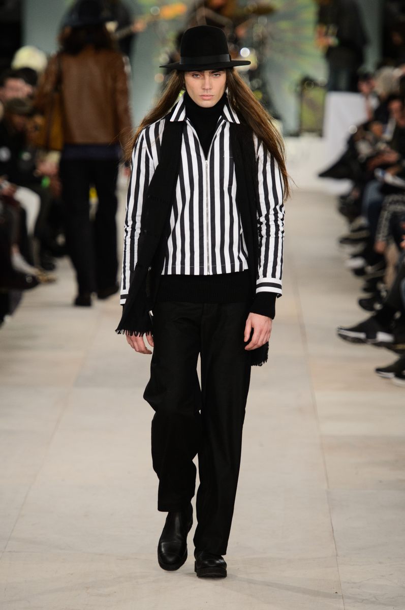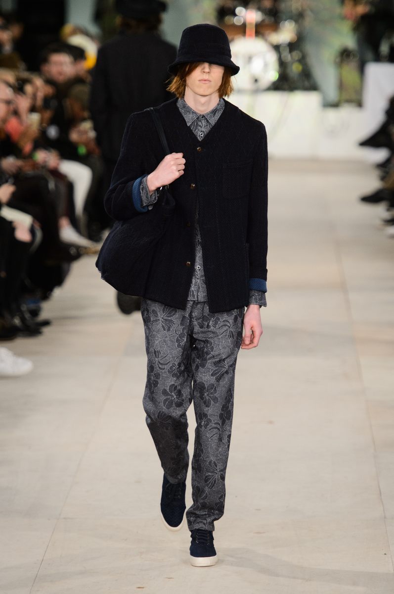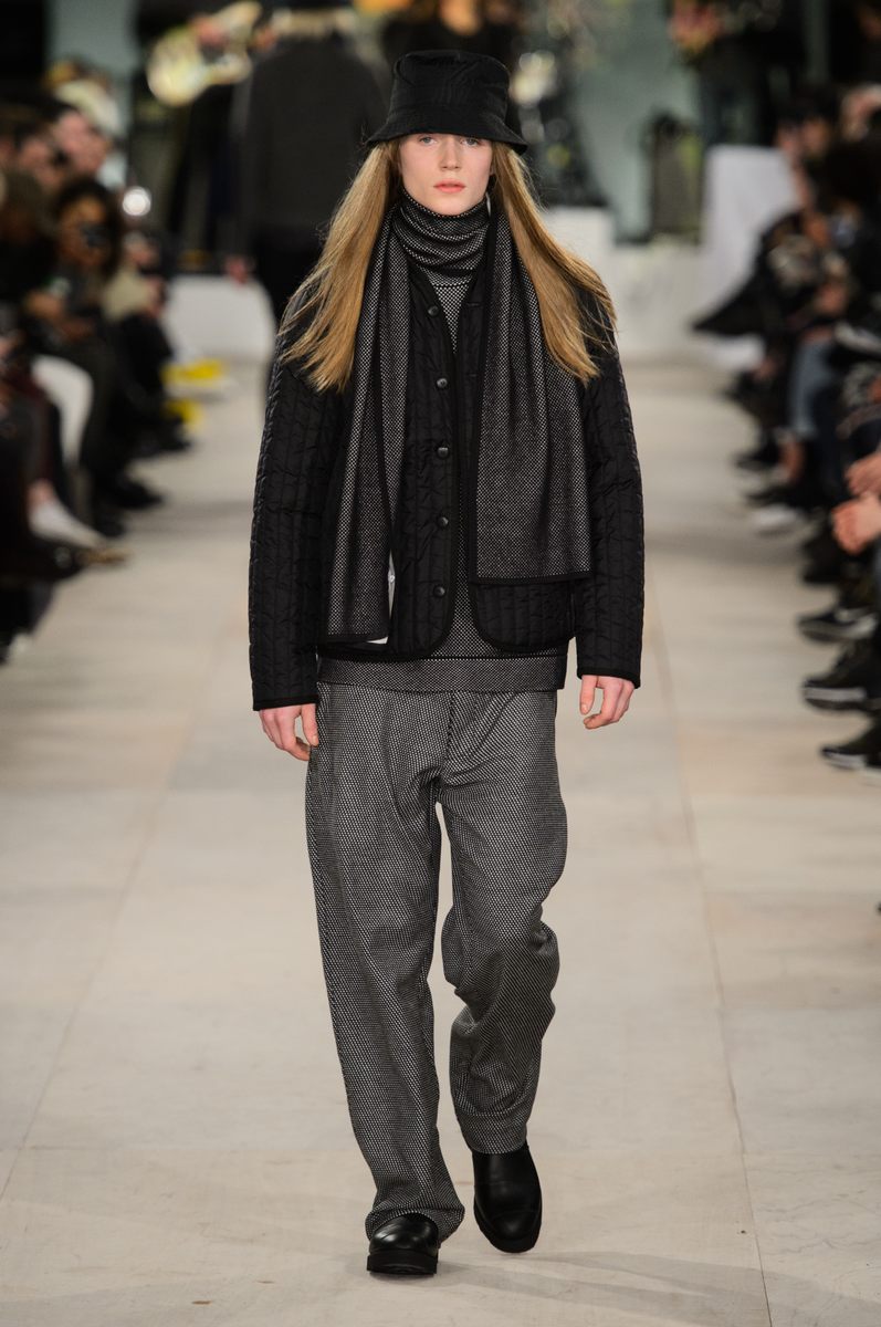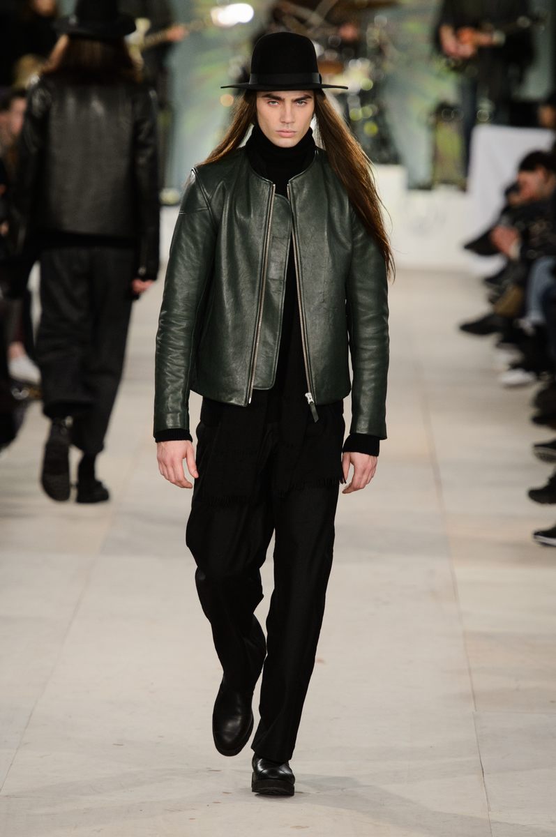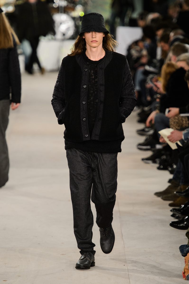YMC went the way of the musician for its fall-winter 2016 men’s collection. Presented during London Collections: Men, the brand celebrated its 20 year anniversary with a stylish nod to 1960s British folk music with a bohemian flair. Dressed in dark hues, the range came with its fair share of ponchos, patched ripped jeans, leather jackets and knitwear featuring tonal prints. Embracing a slouchy silhouette, the man of YMC finished his artsy look with medium-length coats, light scarves, leather boots and wide-brimmed hats.