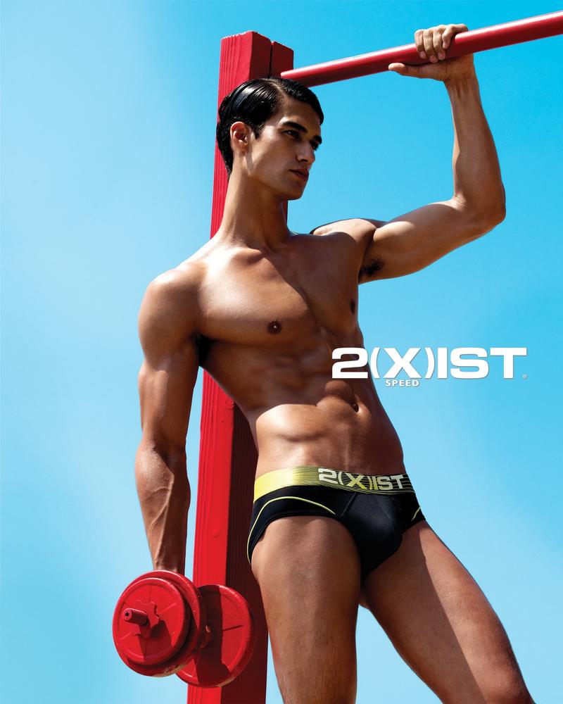 Undressing–Captured against a clear blue sky by the lens of Yu Tsai, model Kaylan Morgan is the newest face of underwear and bodywear label 2(x)ist, replacing André Ziehe and Miguel Iglesias. Giving us a sneak peek of the brand’s spring 2013 collection, Kaylan is definitely a vision of masculine force in essential briefs, posing for images pervaded by a classic aesthetic.