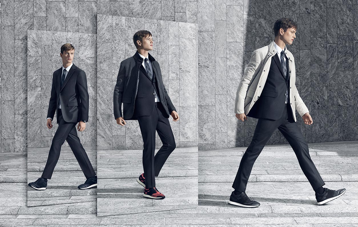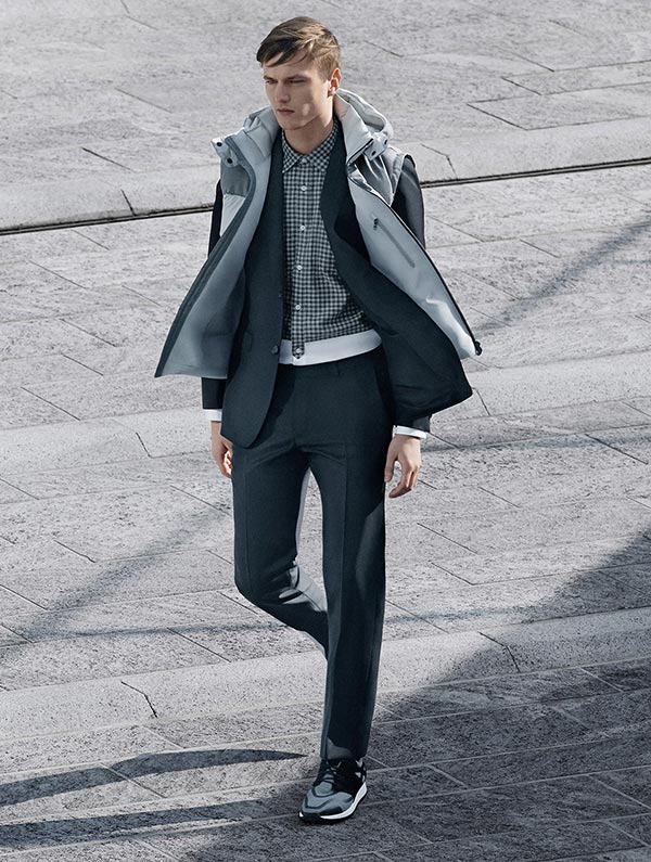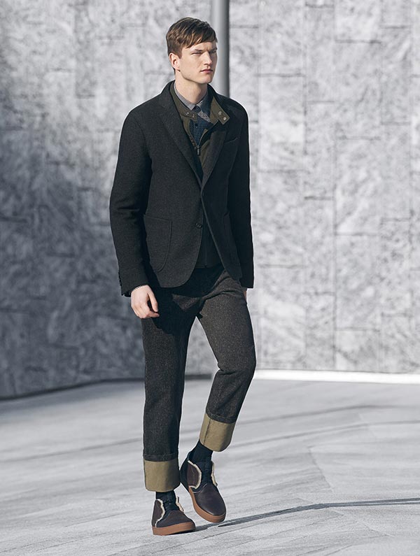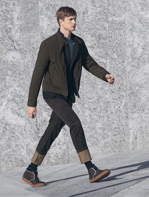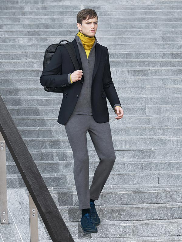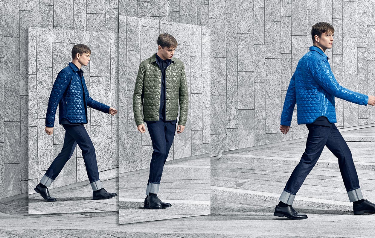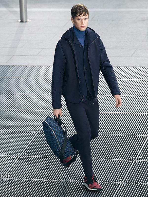 Z Zegna achieves the perfect balance between sporty and sophisticated for fall. The brand juxtaposes fine suiting and smart sportswear with sneakers for a contemporary look. Standouts from the lineup include essential blue denim jeans, lightweight quilted jackets and warm sweaters in a variety of hues.