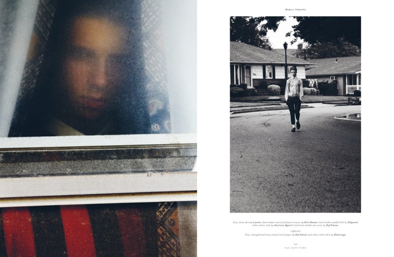 Red model Zach King makes big strides in an editorial for the new issue of Man About Town. Photographed by Kacper Kasprzyk, the young model stars in Modern Suburbia. Plagued with little to no happenings, Zach gets a burst of excitement courtesy of a wardrobe styled by Jay Massacret. Playing off an Americana motif, the spread enjoys a bolt of energy with lively pieces from Giorgio Armani, Mishka and other labels.