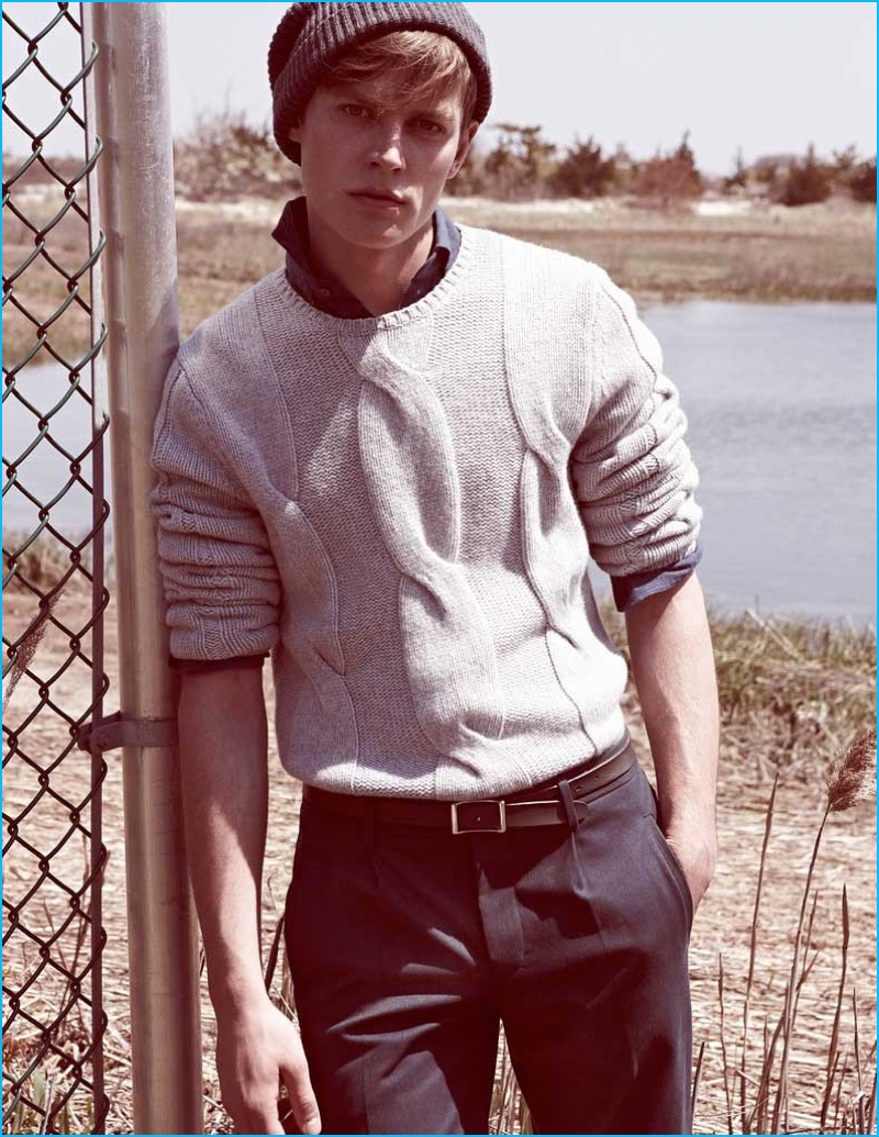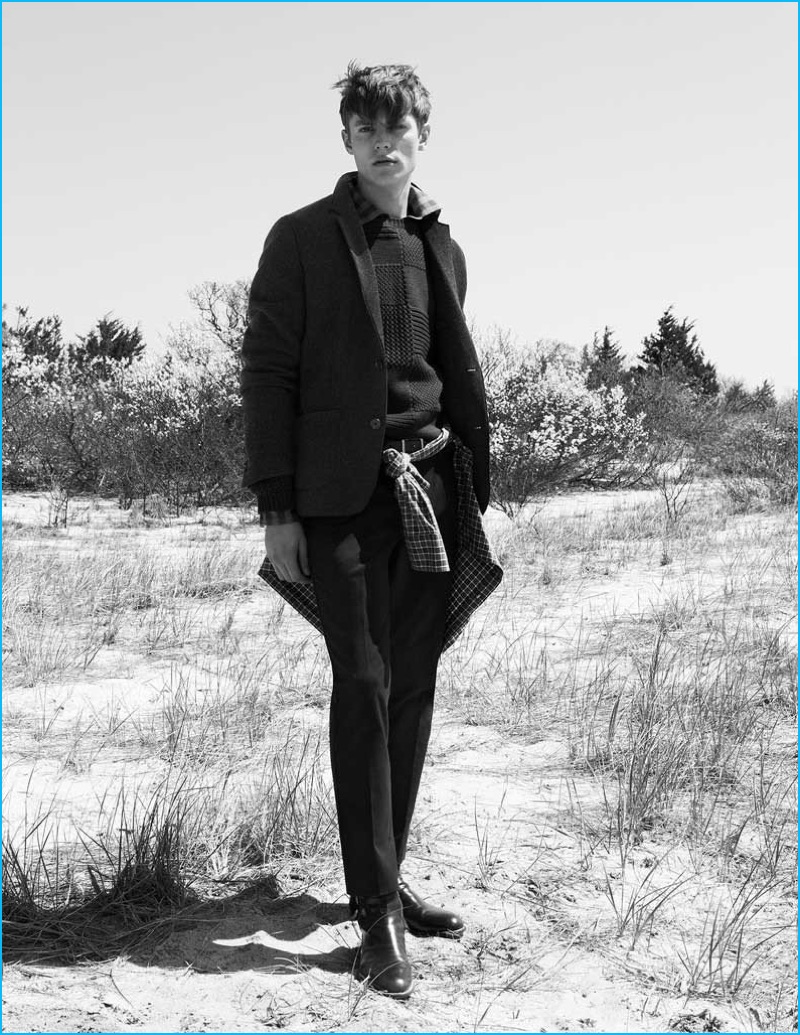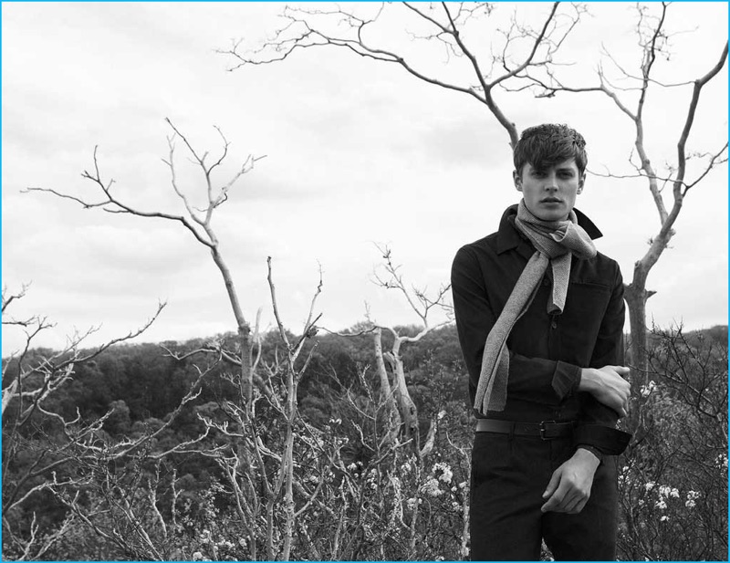Zachary Prell ventures outdoors for its fall-winter 2016 campaign. Janis Ancens plays the brand’s protagonist for the season. Appearing before the lens of photographer Nagi Sakai, Janis embraces a relaxed attitude. Janis’ calm demeanor meets with effortless layers styled by Mitchell Belk. Zachary Prell’s choice wardrobe includes casual staples with smart proportions. Here, cotton button-down shirts, knit sweaters, pleated trousers, and more come together.