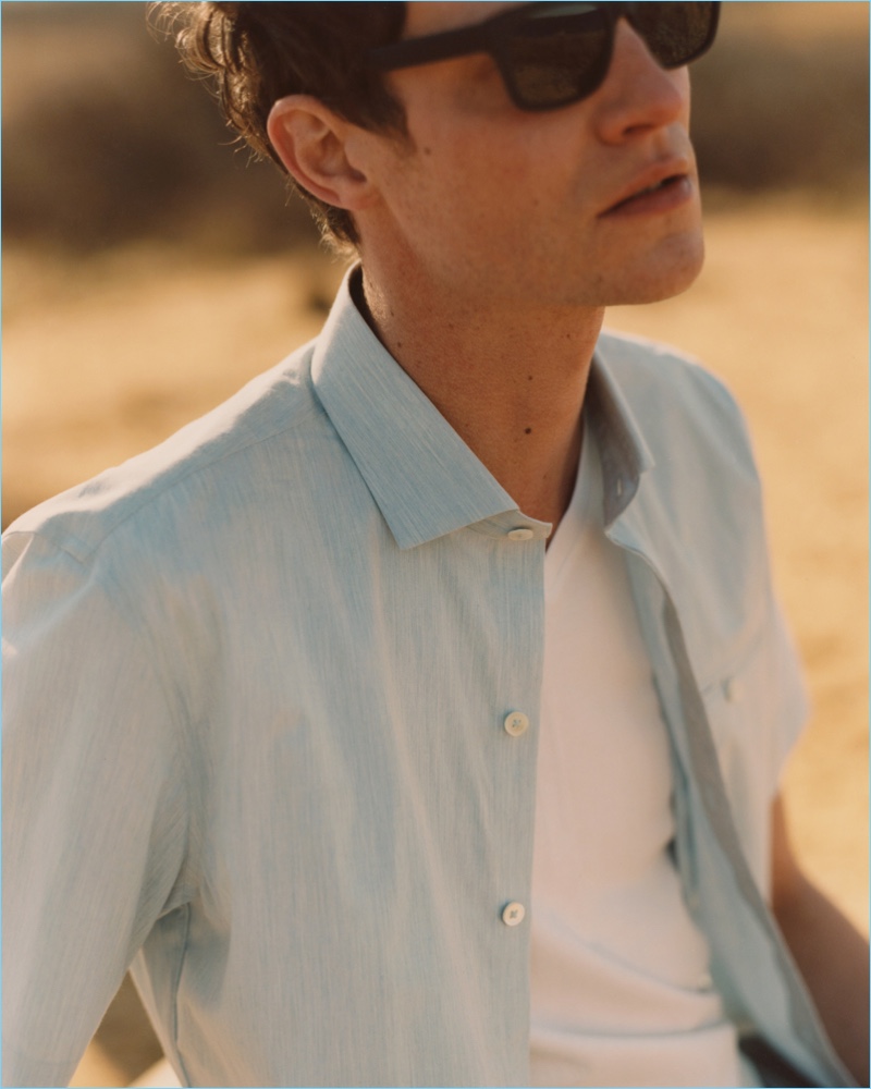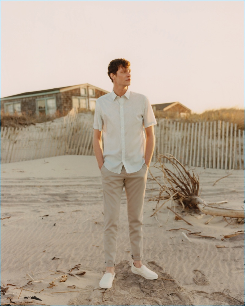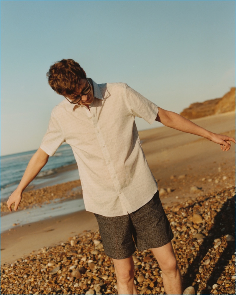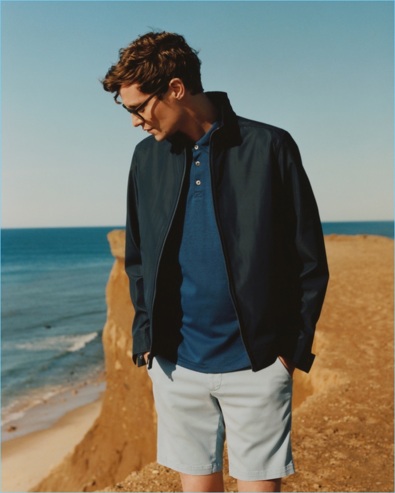 Zachary Prell embraces relaxed vibes with its high summer 2018 lookbook. The brand calls on model Matthew Hitt for a trip to Montauk, New York. Taking to the beach, a relaxed day plays out with creative direction by Sean Sutherland and photography from Andrew Jacobs. Front and center, Matthew dons casual pieces styled by Mac Huelster. Groomed by Scott McMahan for the summer trip, Matthew sports short-sleeve shirts, shorts, lightweight jackets, and more.