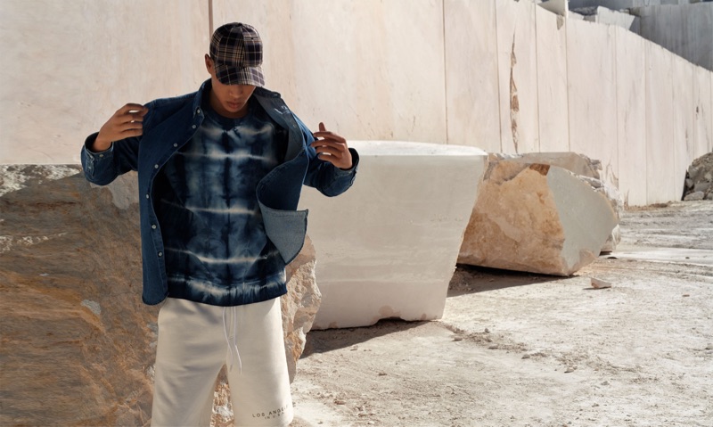 Zara revisits the past with a throwback trend. Tie-dye fashions are front and center for the Spanish brand’s latest men’s fashions. Streetwear comes together with the recognizable statement for a casual approach to the season. Models Mahad Musse, Louis Griffiths, and Jonah Kozlovsky embrace the trend in an editorial. The models showcase Zara’s fun tops, hoodies, and denim, which feature blue and black tie-dye treatments. Essential denim and sneakers accent the fresh lineup.