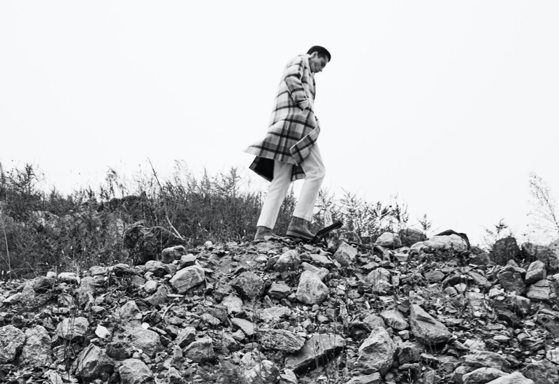 Front and center, Adrien Sahores dons a checked coat from Zara.Pin