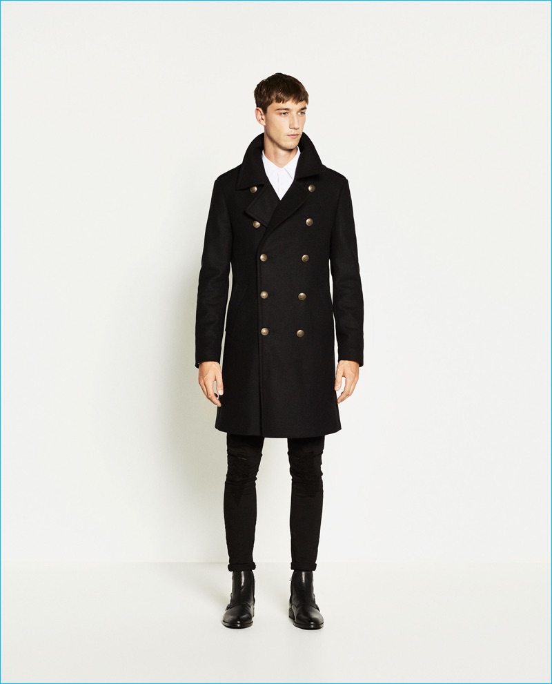 Malthe Lund Madsen wears Zara Man Funnel Neck Coat.Pin