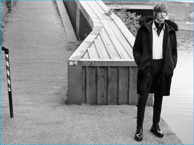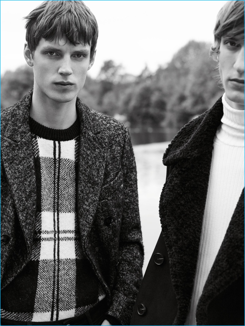 Zara Man steps up its outerwear game with a new winter editorial. The Spanish brand enlists models Tim Dibble and Callum Ward to star in the outing. The pair steps outdoors in a mix of long coats and shorter options such as a faux leather jacket. The style edit also features a selection of slim-fit pants, smart shirts, and cashmere turtleneck sweaters.