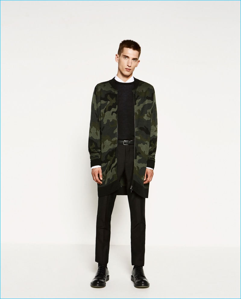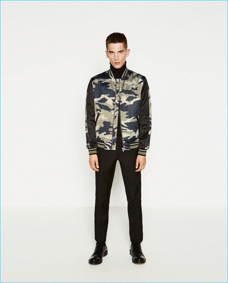Fresh off the unveiling of its fall-winter 2016 campaign, Spanish brand Zara dives right into the season’s trends. Revisiting the military trend, the label taps model Anatol Modzelewski to showcase its modern rift on the aesthetic. Hitting the studio, Anatol stirs up envy in a wardrobe that includes strong tailoring and graphic camouflage prints. Standout pieces range from bomber jackets to oversized coats.
