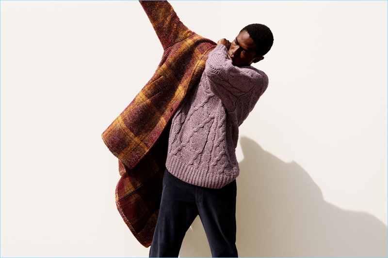 PinHamid Onifade embraces fall’s plaid trend. Connecting with Zara Man, he wears a plaid jacket and check trousers. The model adds a pop of color with a yellow shirt and a knit beanie.PinFrench model Adrien Sahores wears a Zara yellow plaid dufflecoat.
