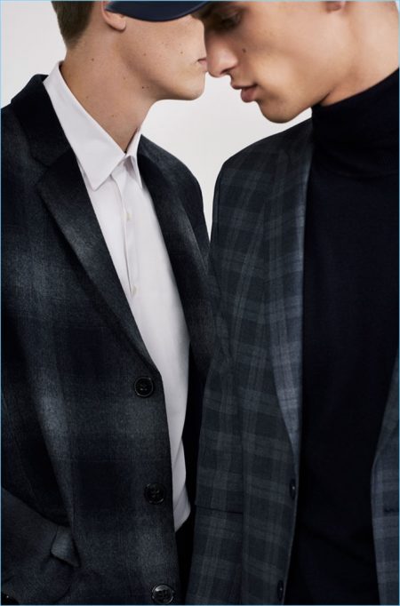 Zara Man enters neutral territory for its new style edit. Top models David Trulik and Victor Nylander reunite with the Spanish brand for the occasion. The pair serves as the perfect inspiration for fall. They wear camel hued outerwear with great pieces like the updated dufflecoat and peacoat. Victor and David also rock must-haves such as Zara’s check tailoring and denim staples.