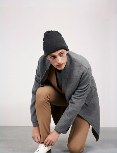 Connecting with Zara Man, David Trulik wears a sharp overcoat with a modern silhouette.Pin