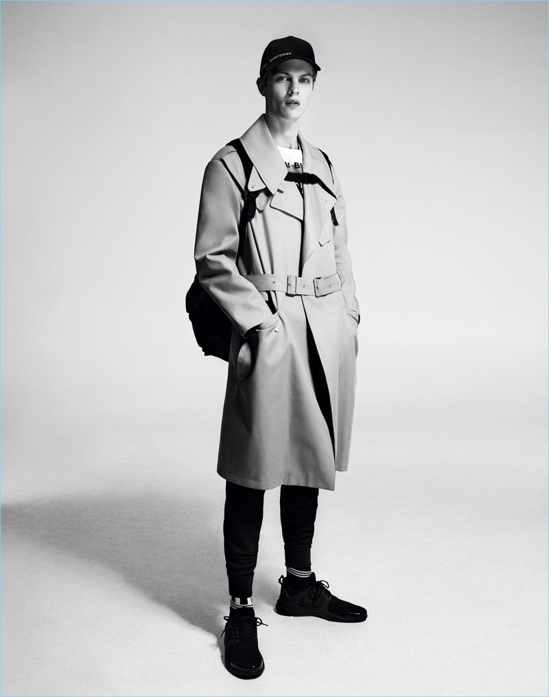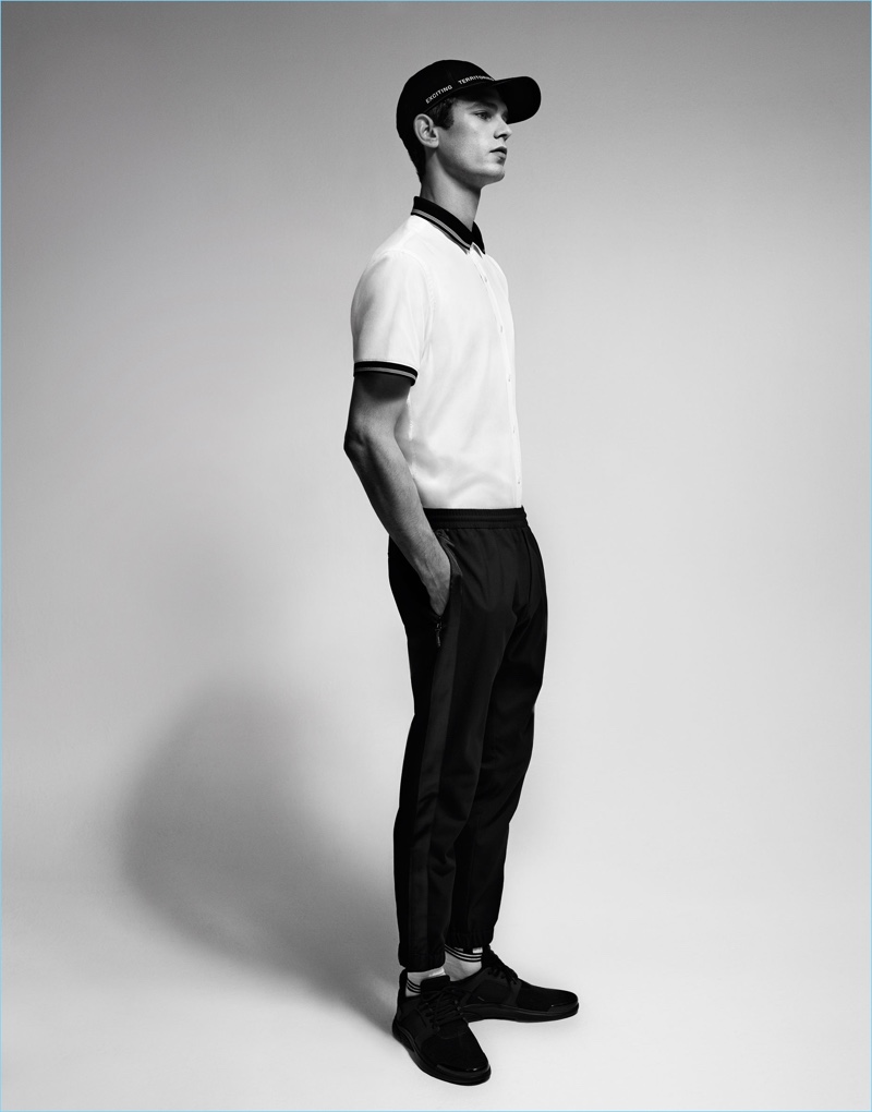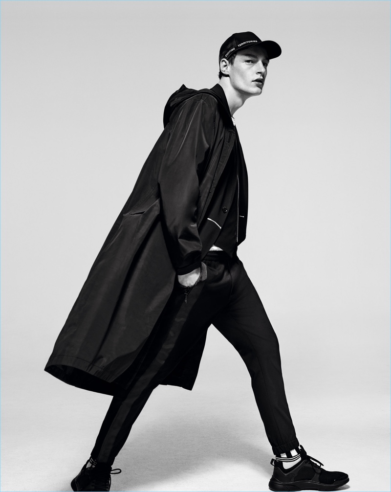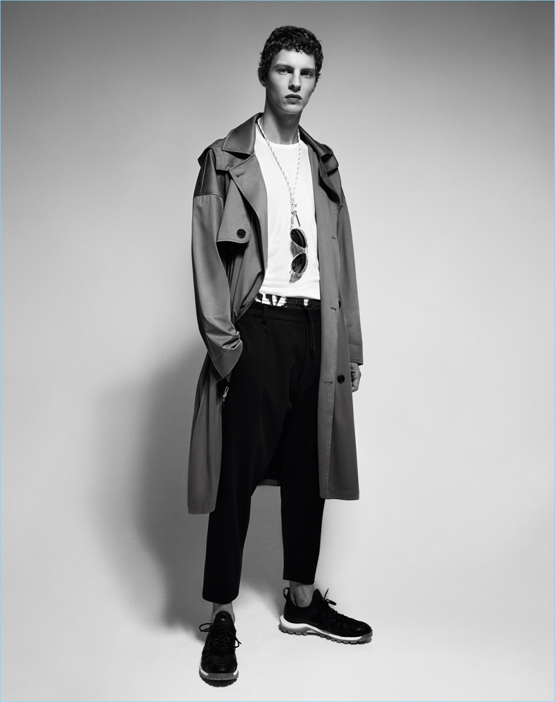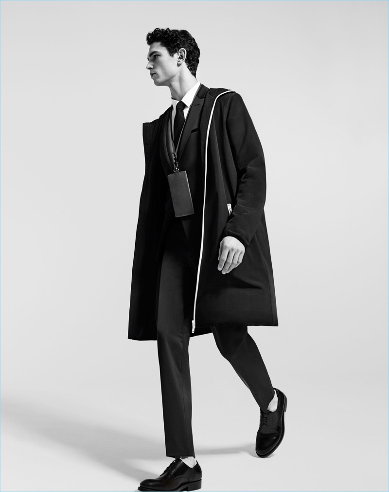 Zara Man turns its spring-summer 2017 campaign over to Steven Meisel. The talented fashion photographer utilizes black and white photography for a stern outing. Models Tim Schuhmacher, Arthur Gosse, and Roberto Sipos take to the studio for the advertisement. Embracing clothes for the global jet-setter who means business, the trio models desirable spring coats. The models also sport Zara’s array of skinny-fit trousers, dress shoes, tees, and smart shirts.