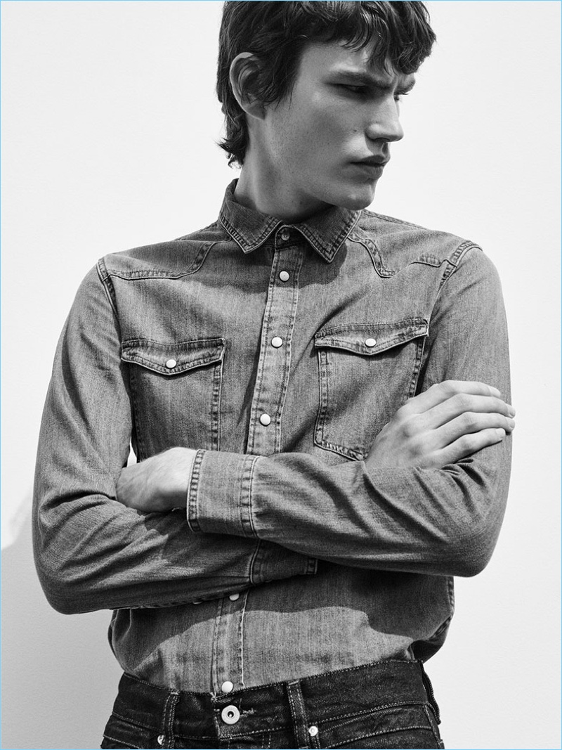 Zara Man embraces a casual aesthetic for its most recent outing. The Spanish brand delivers a denim outing. Along for the ride, models Elias de Poot, Marijn Aper, Oskar Dalsjø, and Salomon Diaz come together. In addition to featuring indigo hued denim, Zara strikes a colorful code. The label highlights bold color options that vary from green to red. Colorful alternatives to the classics provide easy ways to mix up your next double denim look.