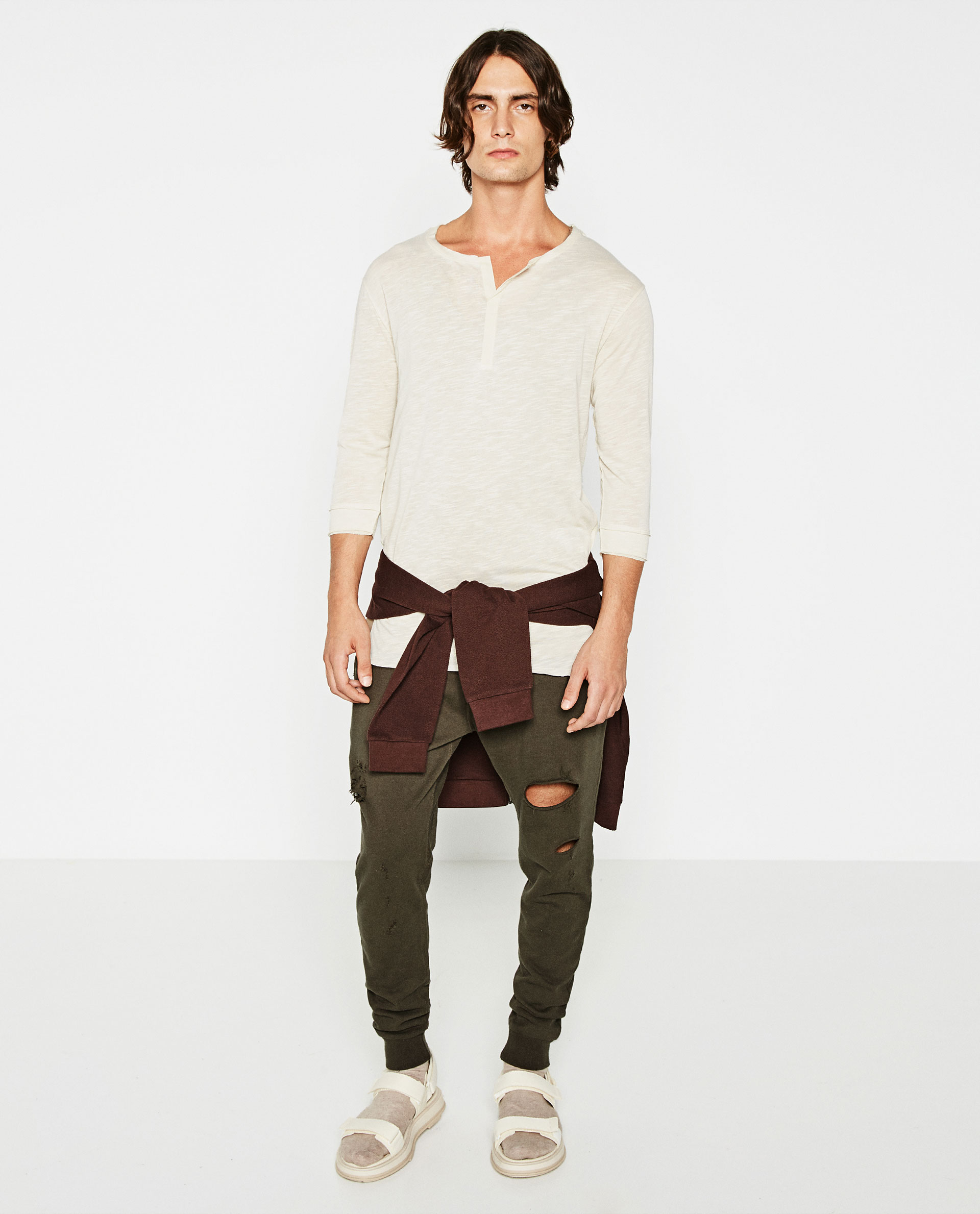 Zara tears a page from the Kanye West book of style, channeling his Yeezy aesthetic for its latest streetwear capsule. The brand’s Streetwise collection brings together a casual wardrobe of neutral-hued separates. Embracing modern proportions and destroyed detail treatments, Zara packs a grunge-fueled punch. Its new lineup boasts endless layers, covering the gamut with lightweight sweatshirts, oversized t-shirts, short-sleeve sweatshirts, and piped-seam t-shirts. Plush Bermuda shorts and trousers also join the laid-back outing.
