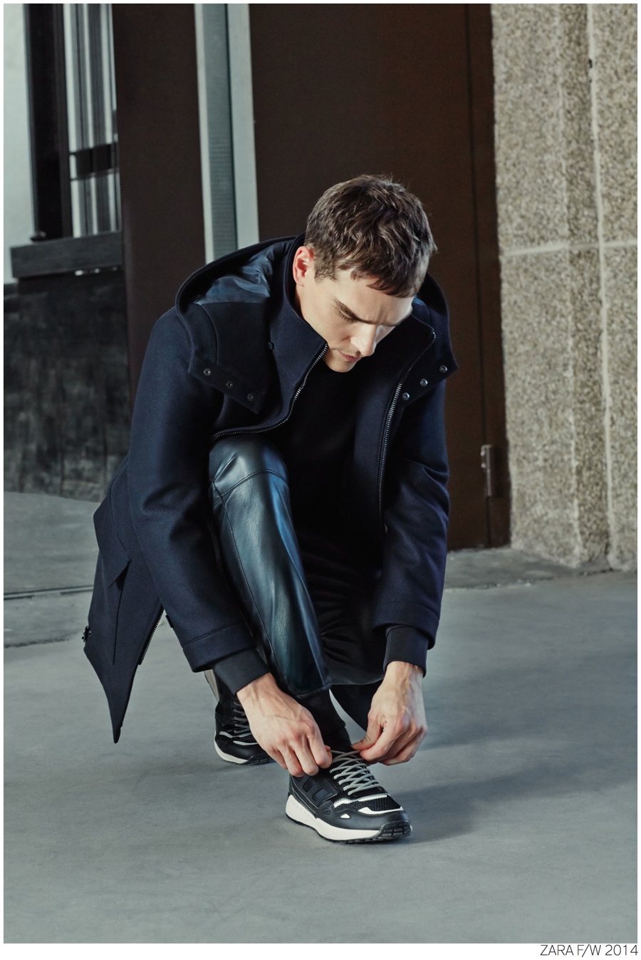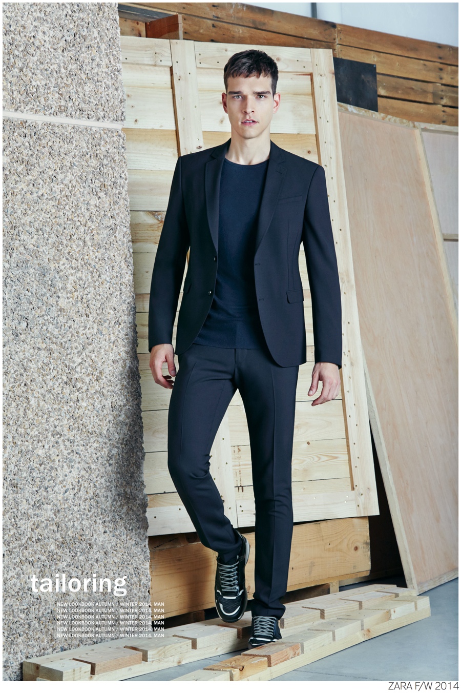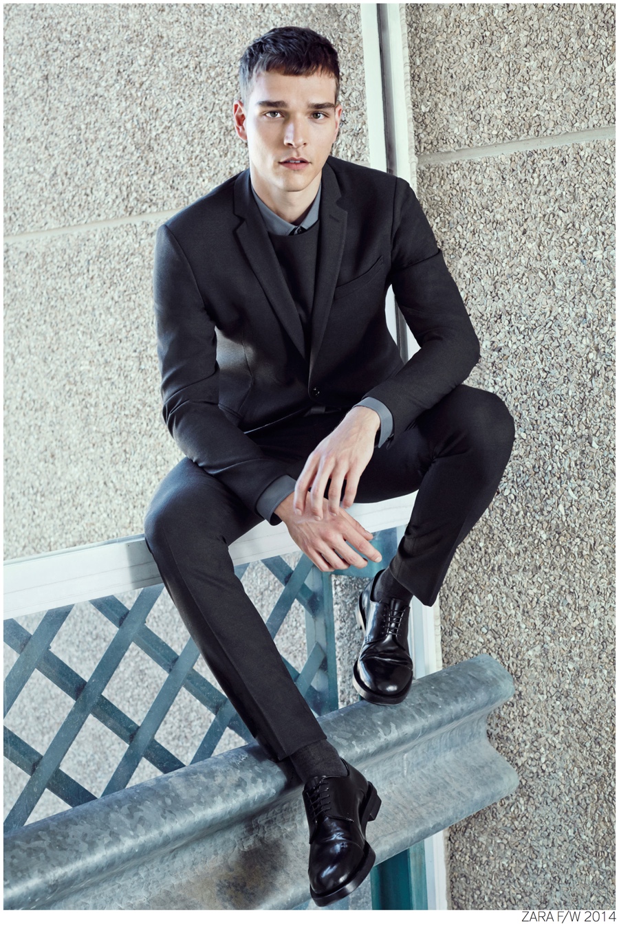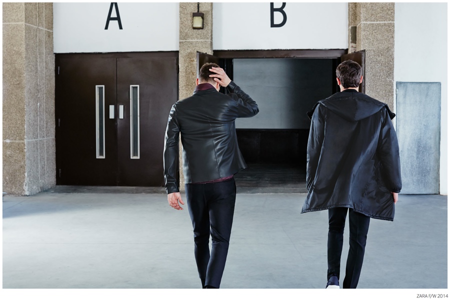 Spanish label Zara releases its September 2014 lookbook, which features models Hannes Gobeyn and Alexandre Cunha. Providing a smart look at the season, Zara focuses on tailored styles with a slim fit. Among a strong lineup are navy and charcoal suits that are ideal with a pair of leather oxfords or contemporary trainers. Refining its idea of ‘new casual’, essentials such as basic pants and jackets are reworked in leather for an urban edge. Meanwhile, choice accessories such as backpacks with modern details are provided for the stylish man on the go.