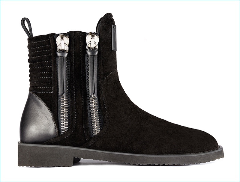 Pay attention to details with Zayn Malik x Giuseppe Zanotti’s ZIGI boots: “A modern take on the Chelsea boot in black suede with leather details and metallic double side zips.”