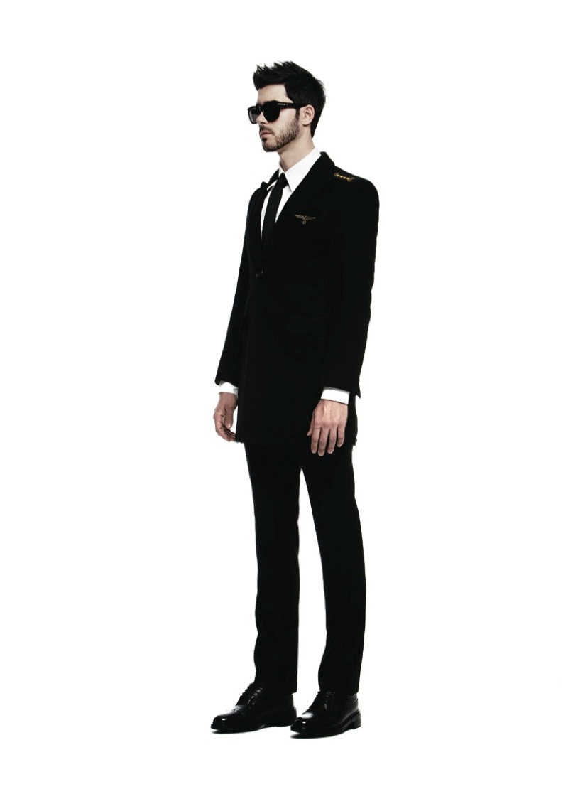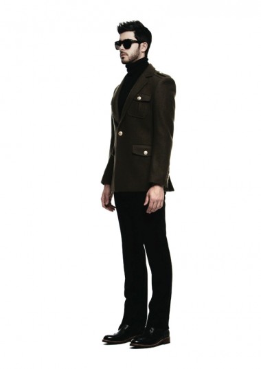 Men in Military–South Korean label Zero_Underscore takes a militant approach to the fall/winter 2013 season, taking inspiration from designer Hyungbae Kim’s experience in the military nine years ago. As always, blending formal and casual attributes, this season’s collection tackles a color palette of navy, khaki and black for a streamlined finish. Keeping trousers lean, outerwear steals the show, maintaining a traditional shape for the civilian or adding large buttons and epaulettes for a military-style alternative.