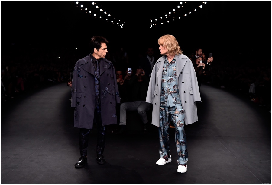 The catwalk was on fire as Derek Zoolander (Ben Stiller) and Hansel (Owen Wilson) made their return to Paris Fashion Week, exclusively walking for Valentino. A silence swept the audience as the two stunners appeared on the runway. While Derek wore a Night Butterflies brocade suit with a hand-embroidered overcoat and black creeper shoes, Hansel modeled a Silk Continent print pajama suit with a double cashmere overcoat and open sneakers. The two will also reunite for what is sure to be a blockbuster as Zoolander 2 hits theaters February 12, 2016.